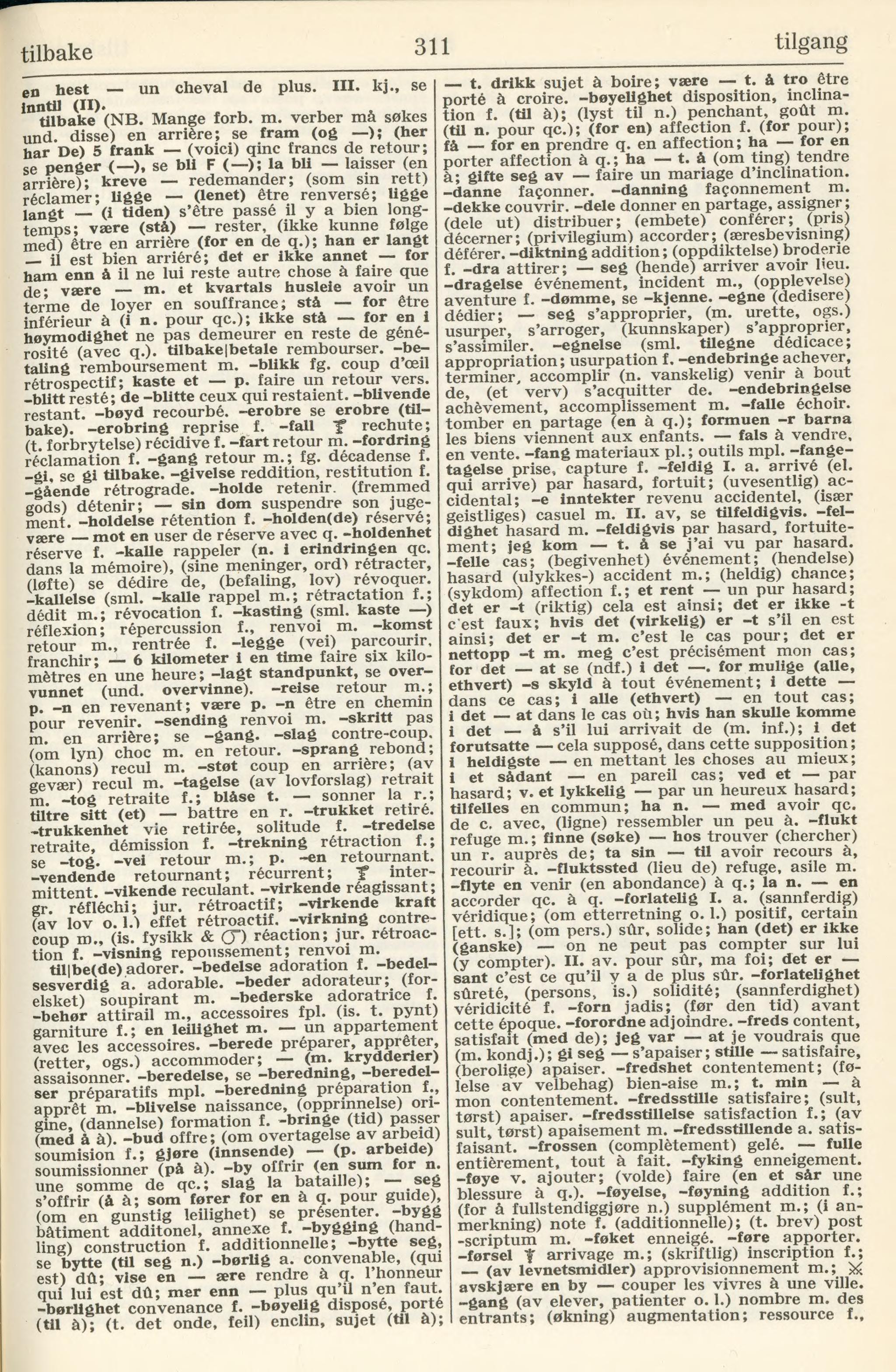 tilbake (NB. Mange forb. m. verber må søkes