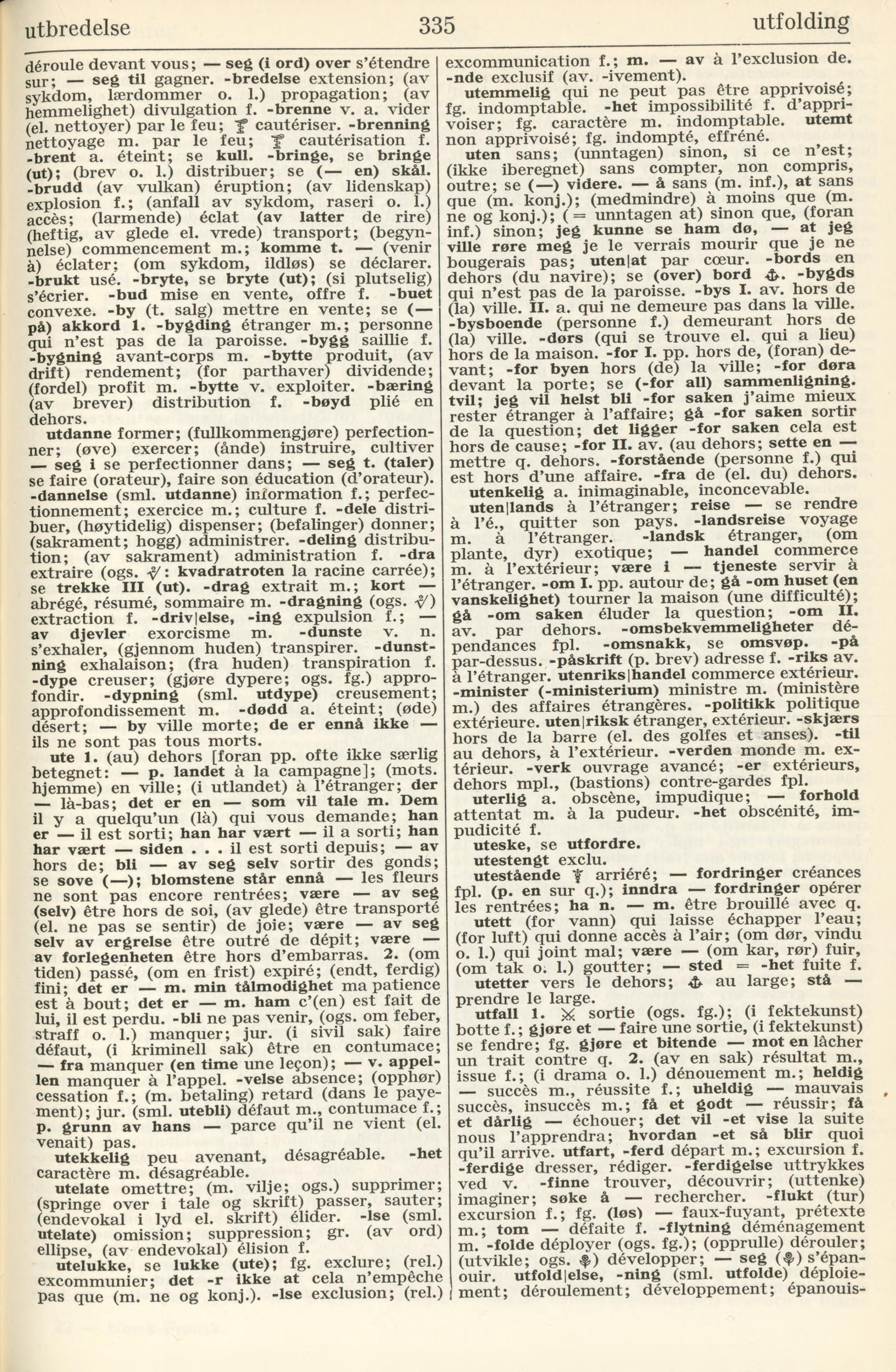 qu’il arrive. utfart, -ferd départ m.; excursion f.