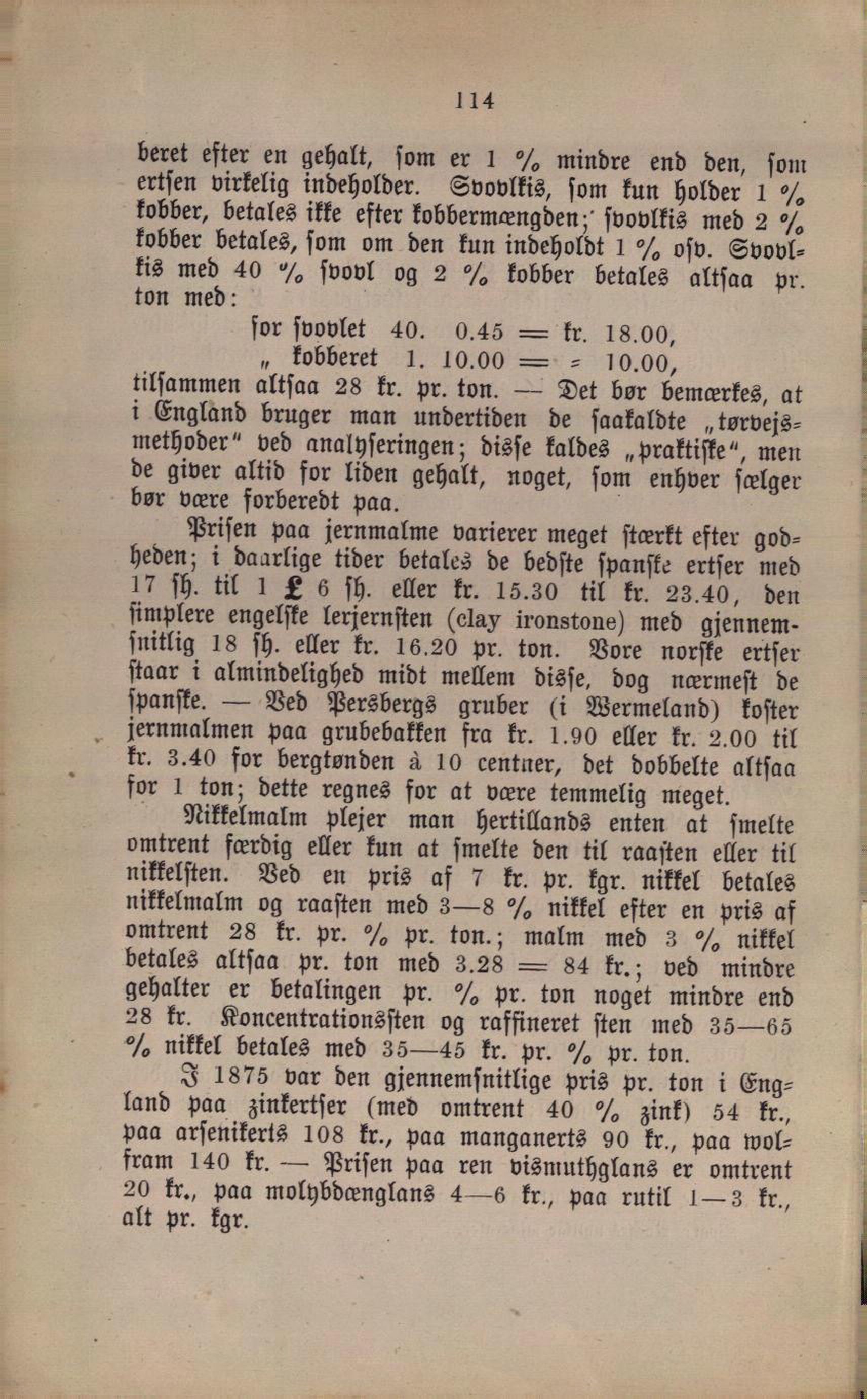 omtrent 28 kr. pr. ^ pr. ton.; malm med 3 ^ nikkel