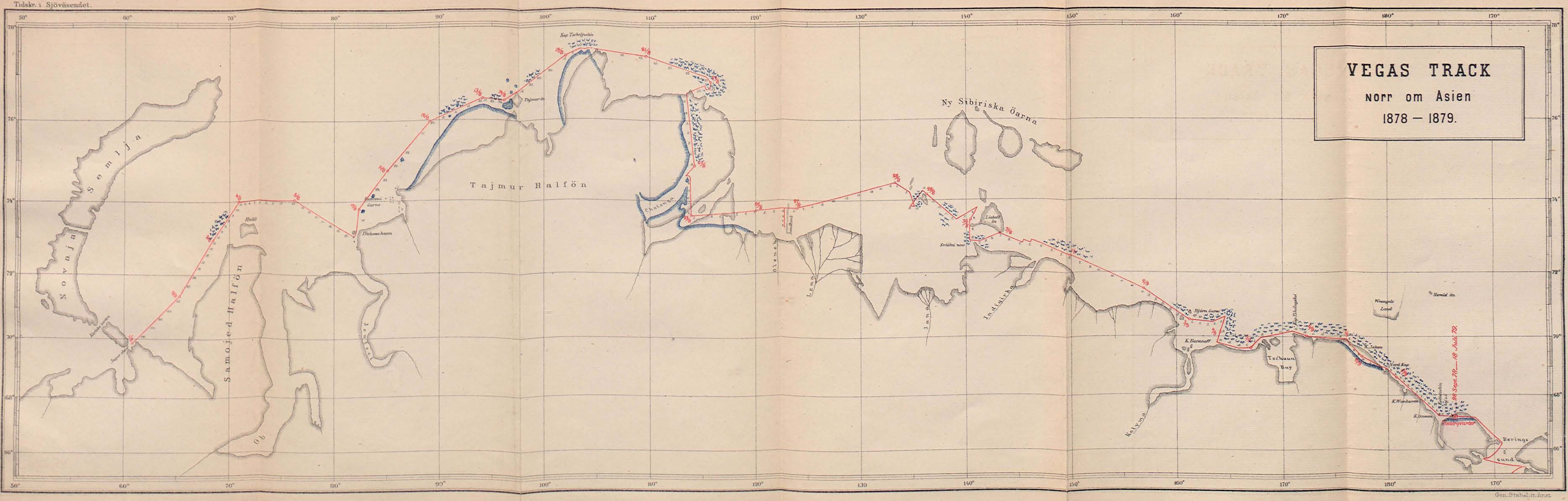 | Gen.Stab. Lît. Anst. VEGAS TRACK norr om Asien 1878—1879. |