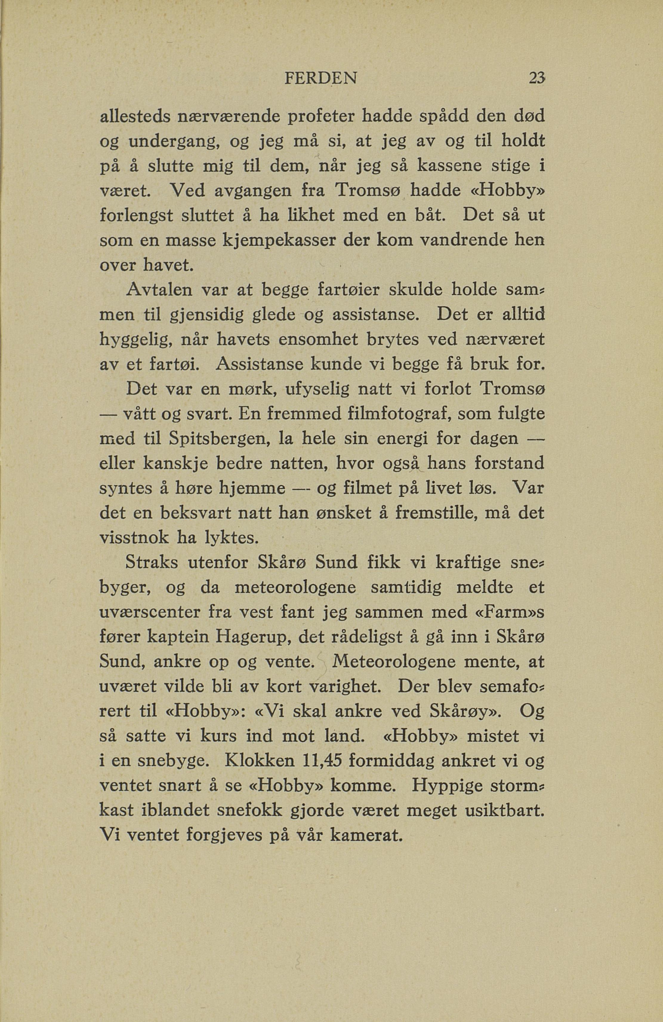 været. Ved avgangen fra Tromsø hadde «Hobby»