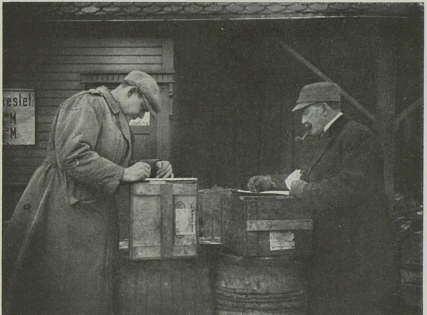 Riiser-Larsen og apoteker Zapffe kontrollerer listene. |