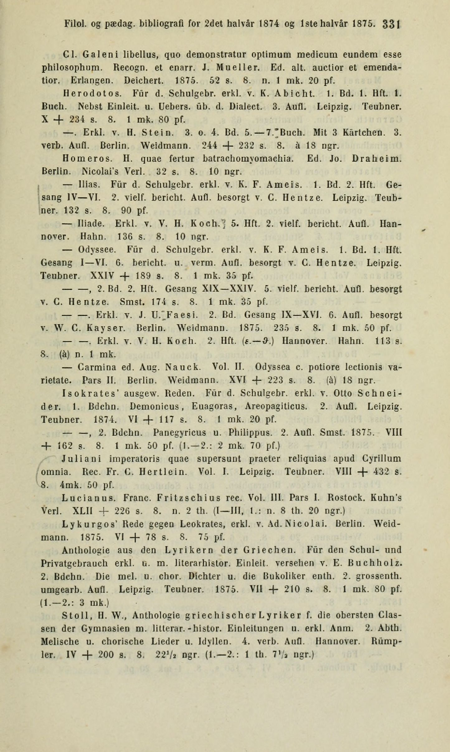 Teubner. 1874. VI -f 117 s. 8. 1 mk. 20 pf.
