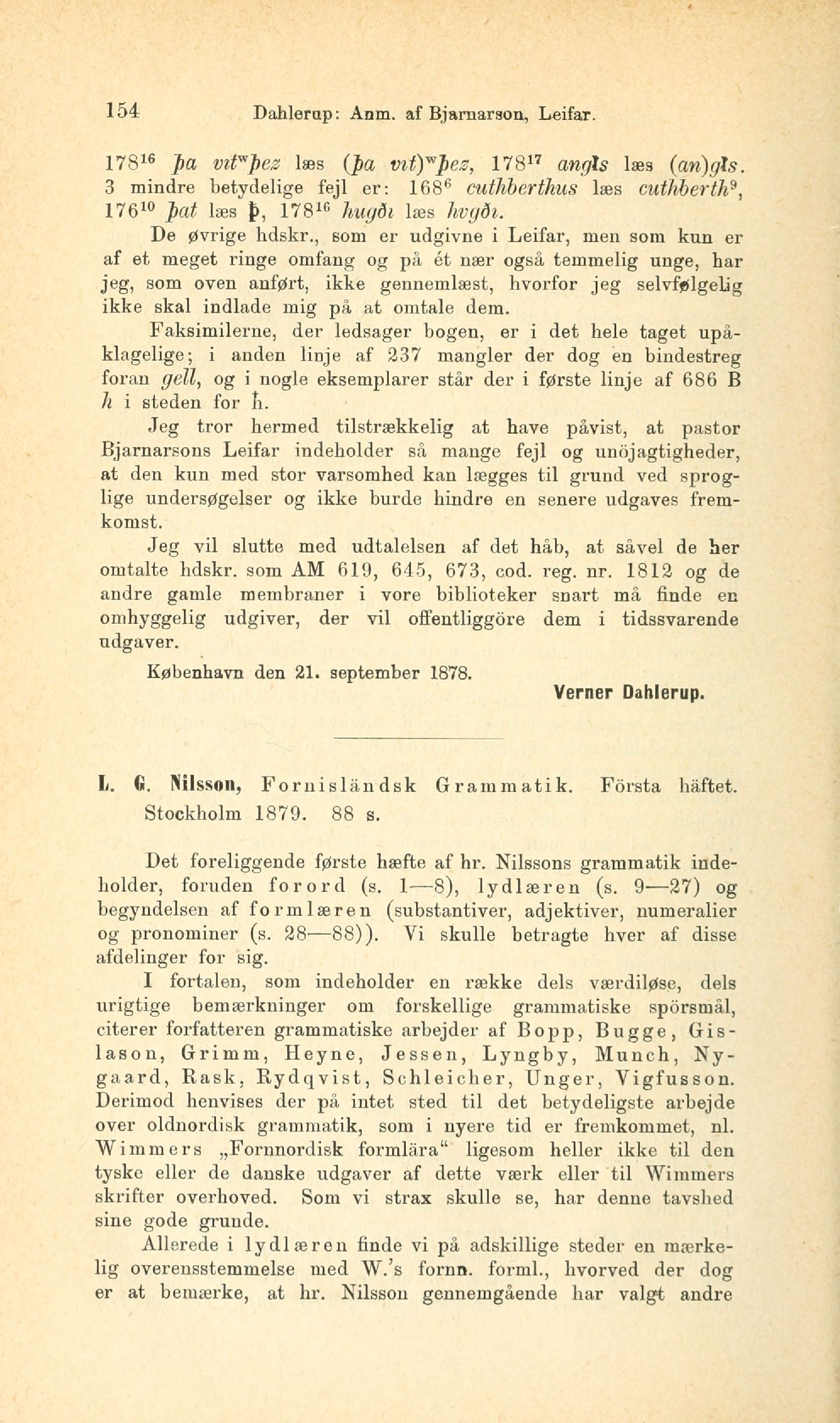 over oldnordisk grammatik, som i nyere tid er fremkommet, nl.