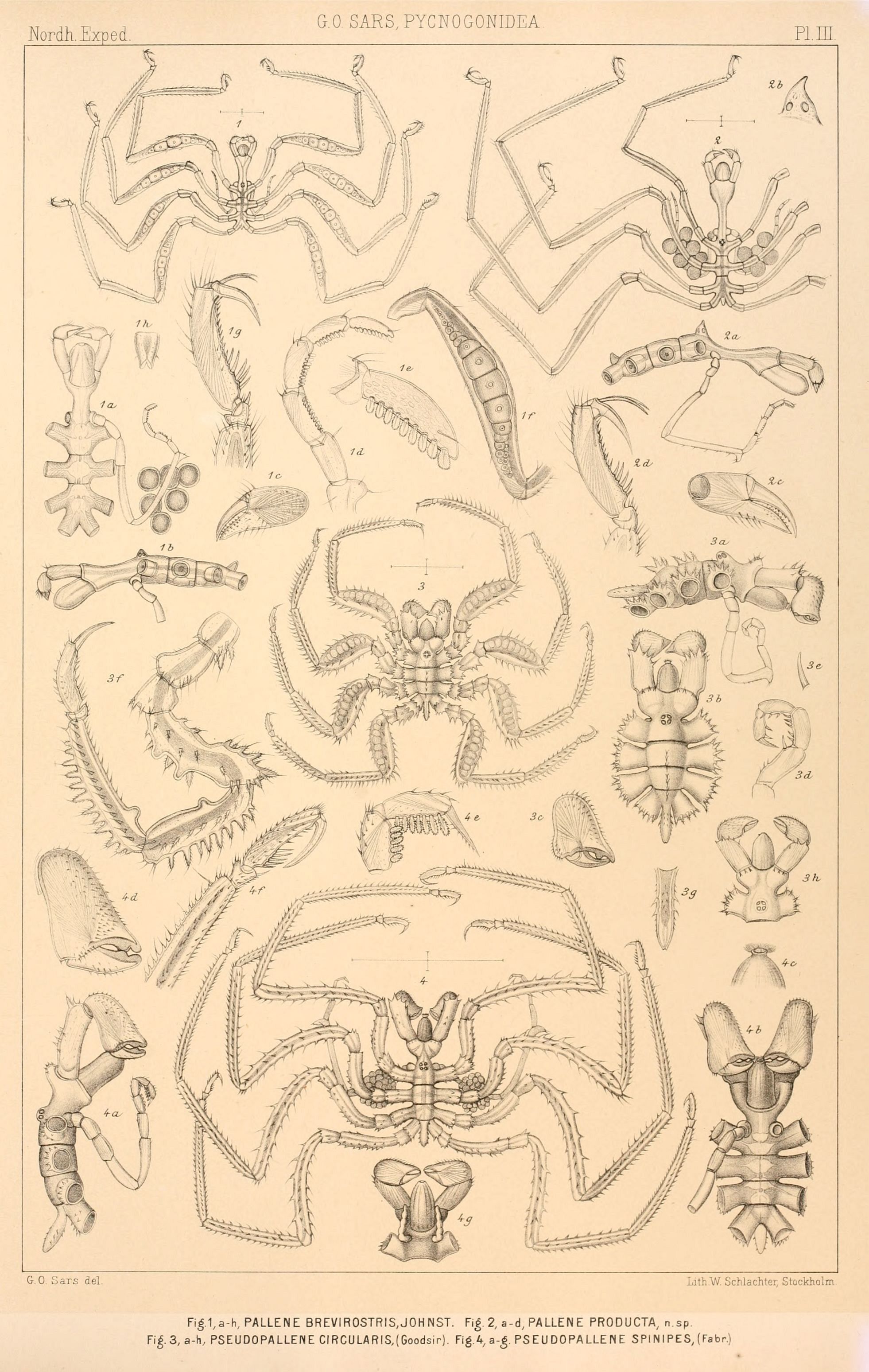 Fig.3, a-h, PSEUDOPALLENE CIRCULARIS,(Goodsir). Fig.4,a-j. PSEUDOPALLENE SPINIPES,(Fabr.)