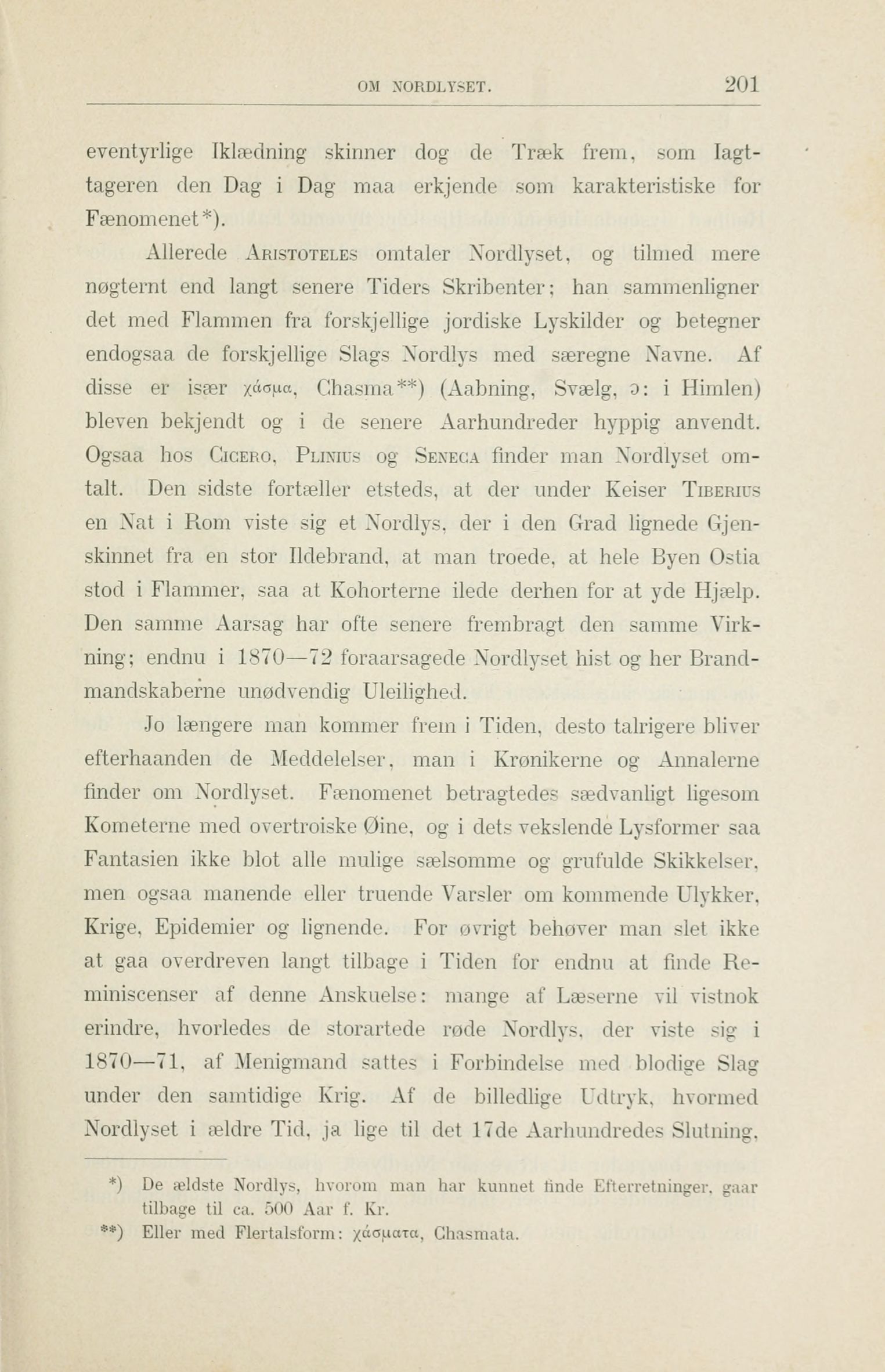 Nordlyset i ældre Tid, ja lige til det 17de Aarhundredes Slutning,