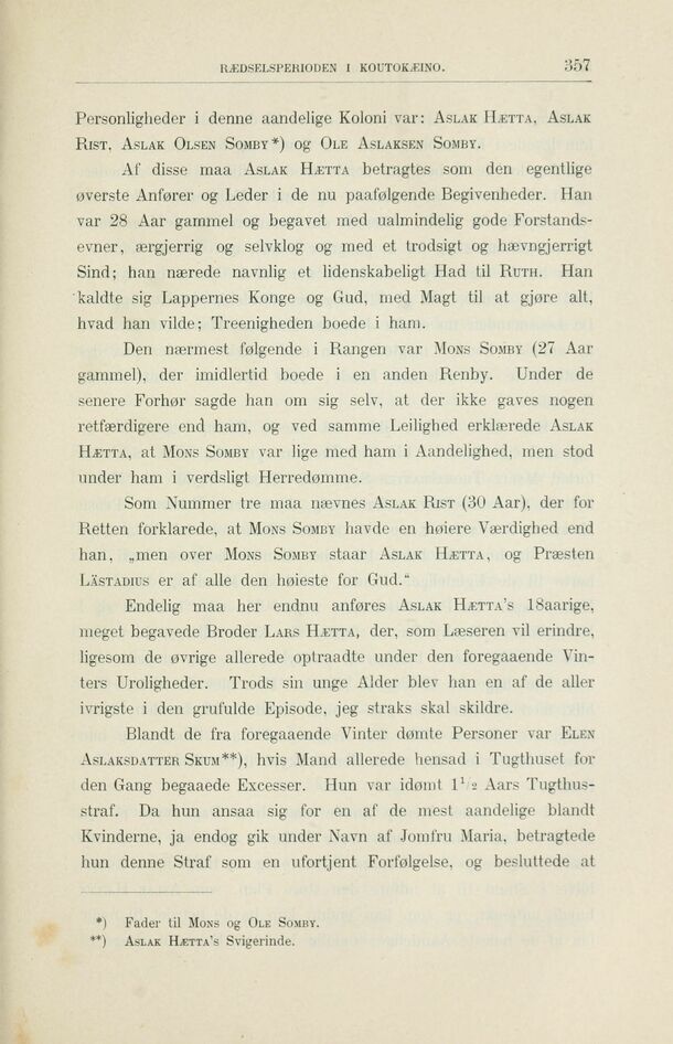 Personligheder i denne aandelige Koloni var: Aslak Hætta, Aslak