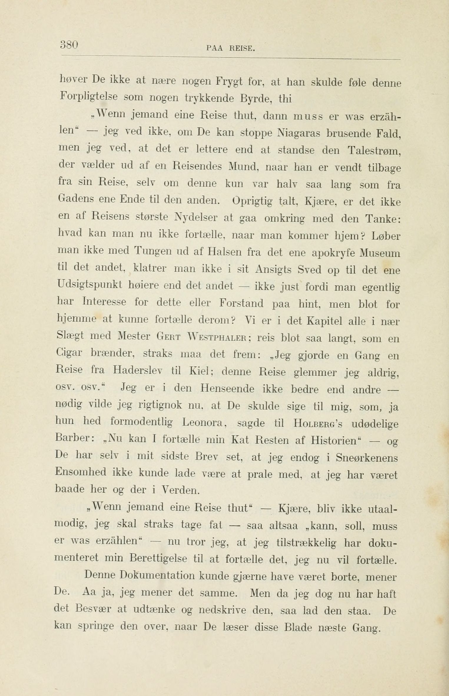 der vælder ud af en Reisendes Mund, naar han er vendt tilbage