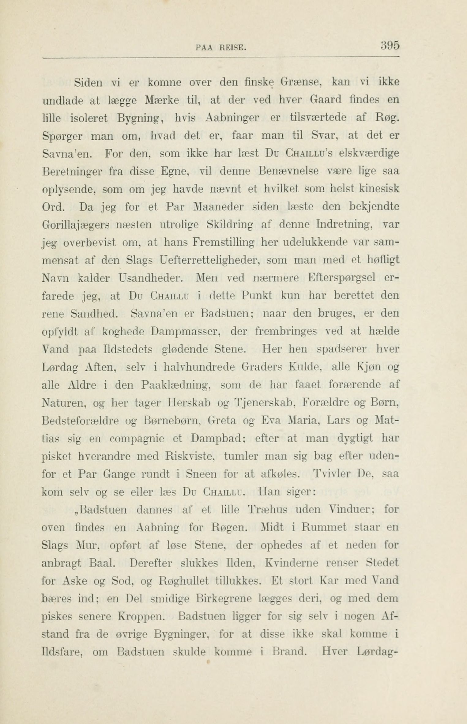 Savna’en. For den, som ikke har læst Du Chaillu’s elskværdige