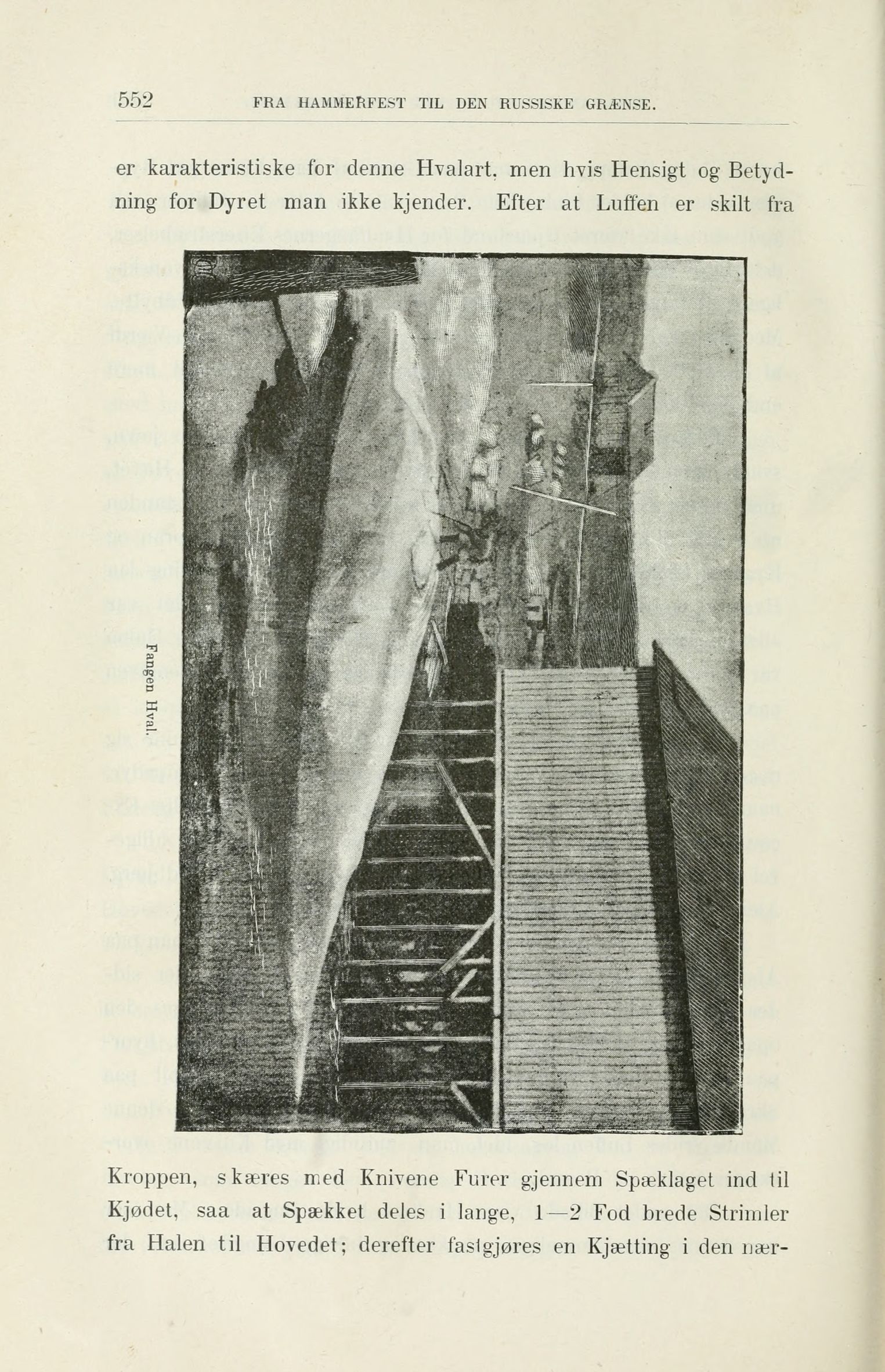 Kjødet, saa at Spækket deles i lange, 1—2 Fod brede Strimler