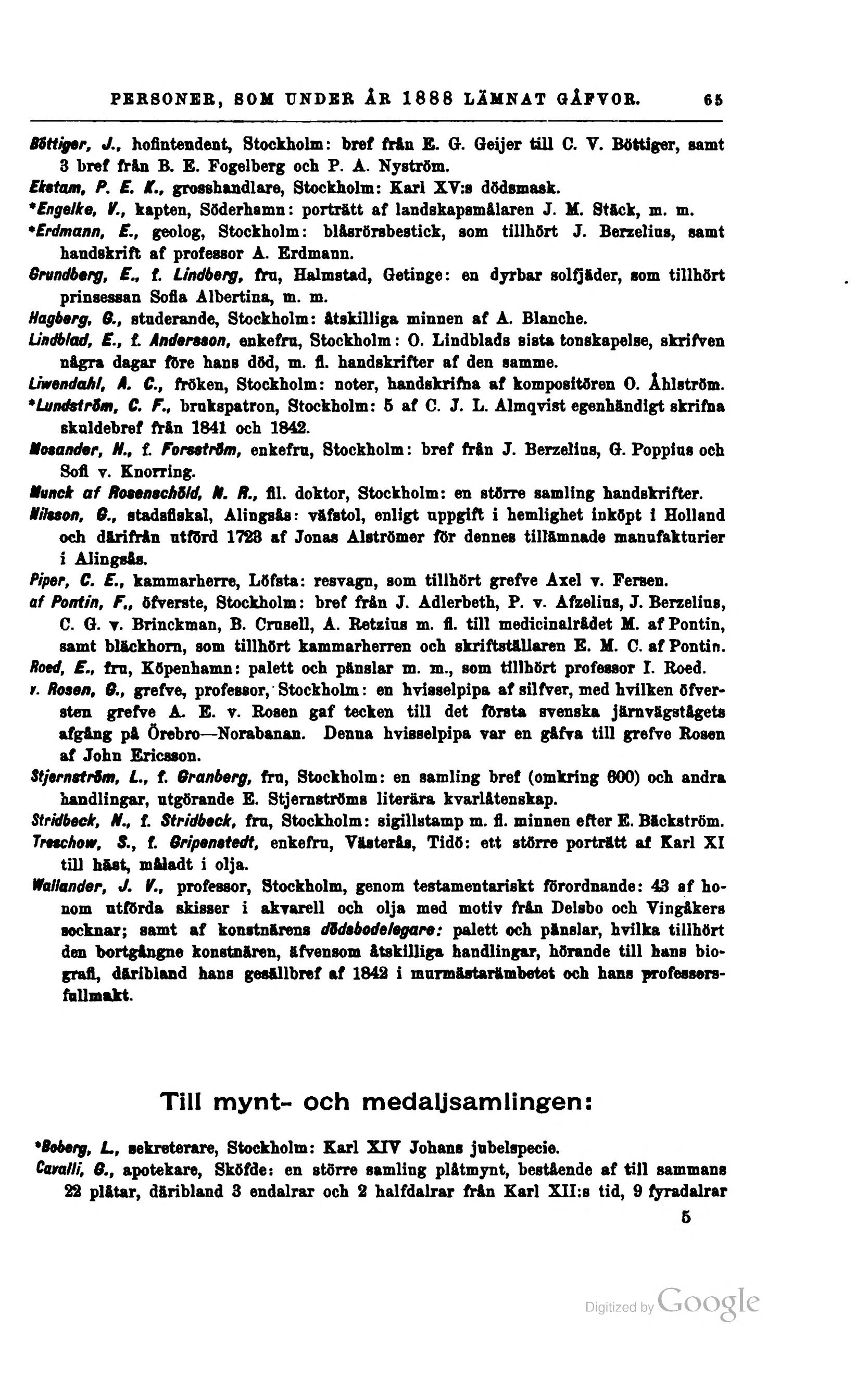 Fallander, J. V., professor, Stockholm, genom testamentariskt förordnande: 43 af
