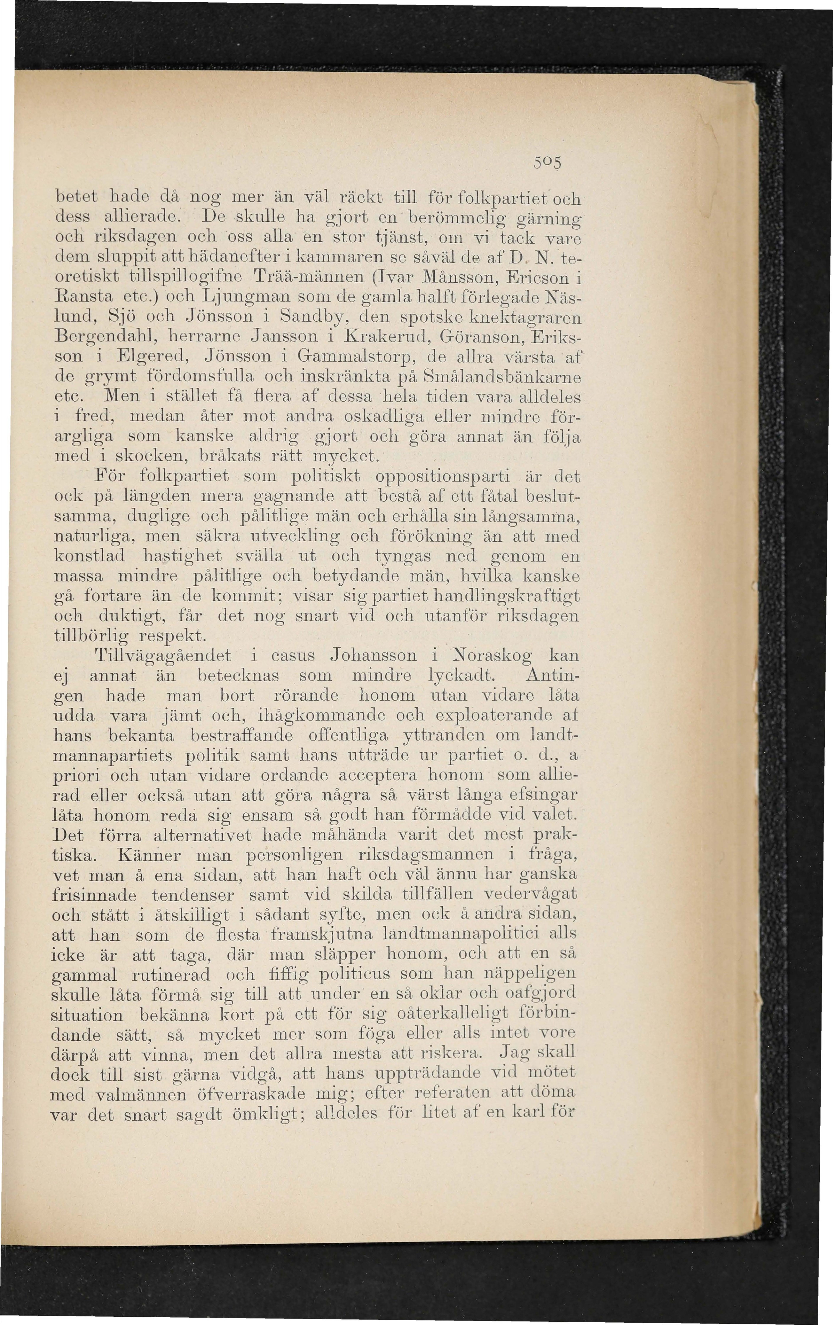landt-mannapartiets politik samt hans utträde ur partiet o. d., a