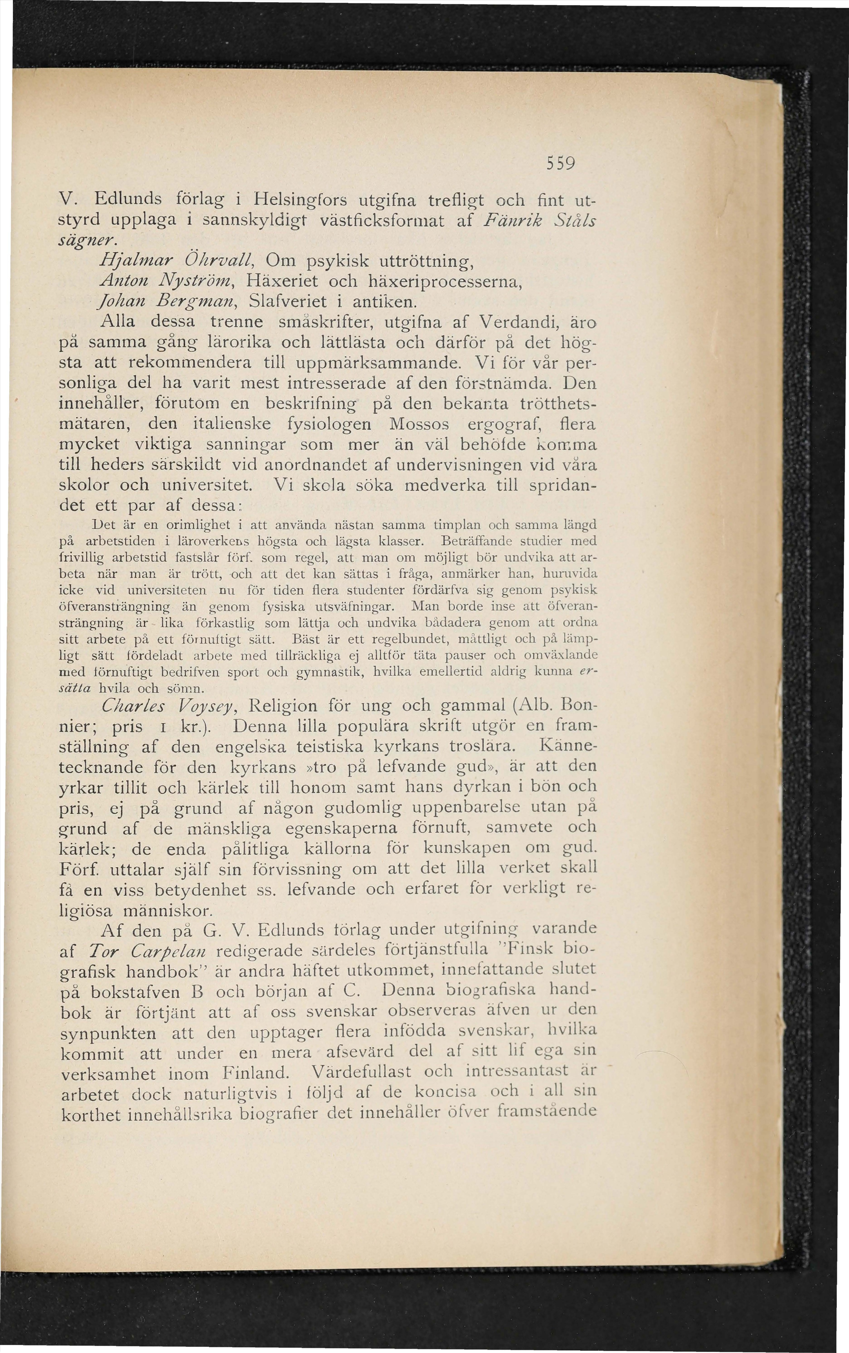 V. Edlunds förlag i Helsingfors utgifna trefligt och fint