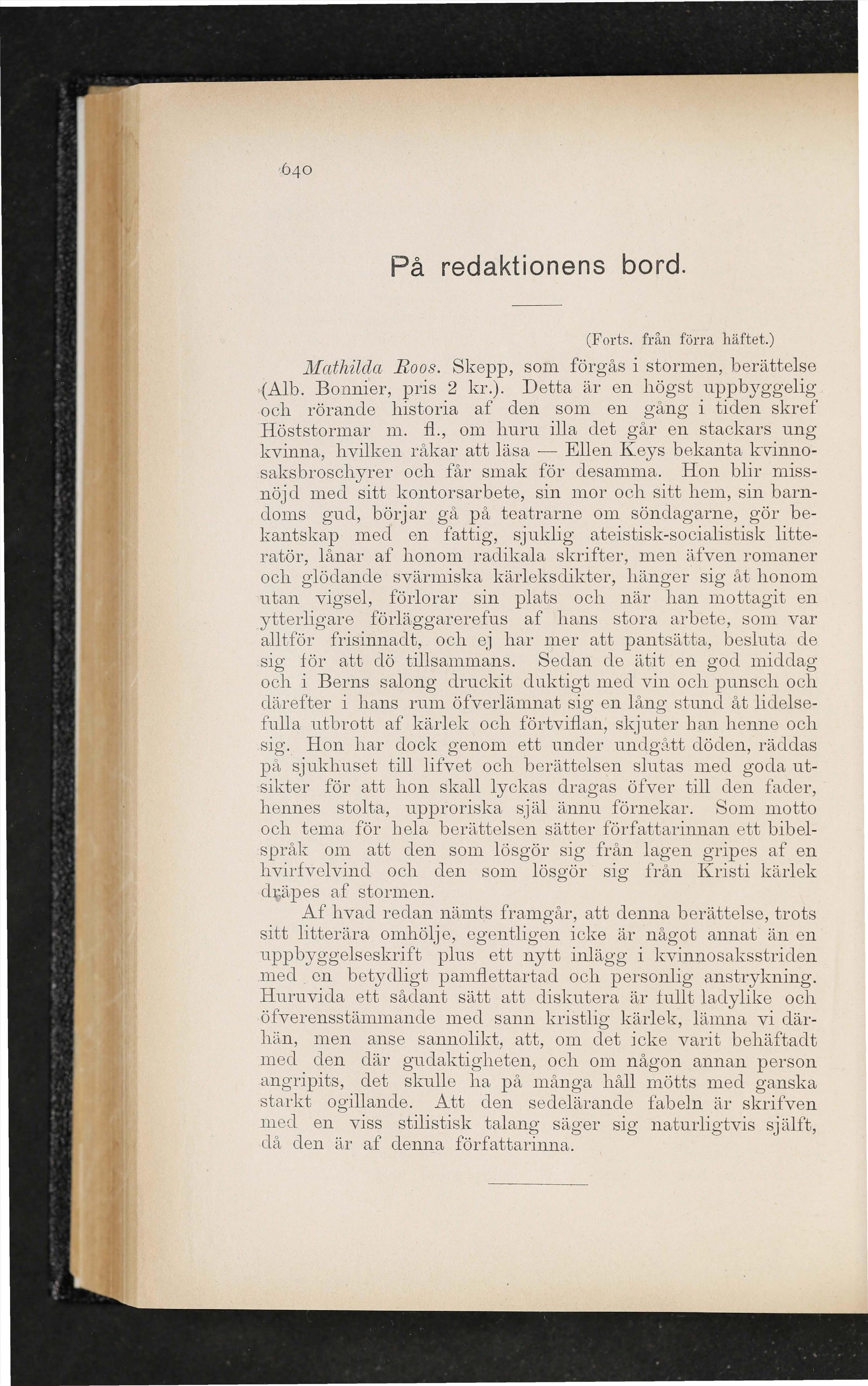 (Alb. Bonnier, pris 2 kr.). Detta är en högst uppbyggelig