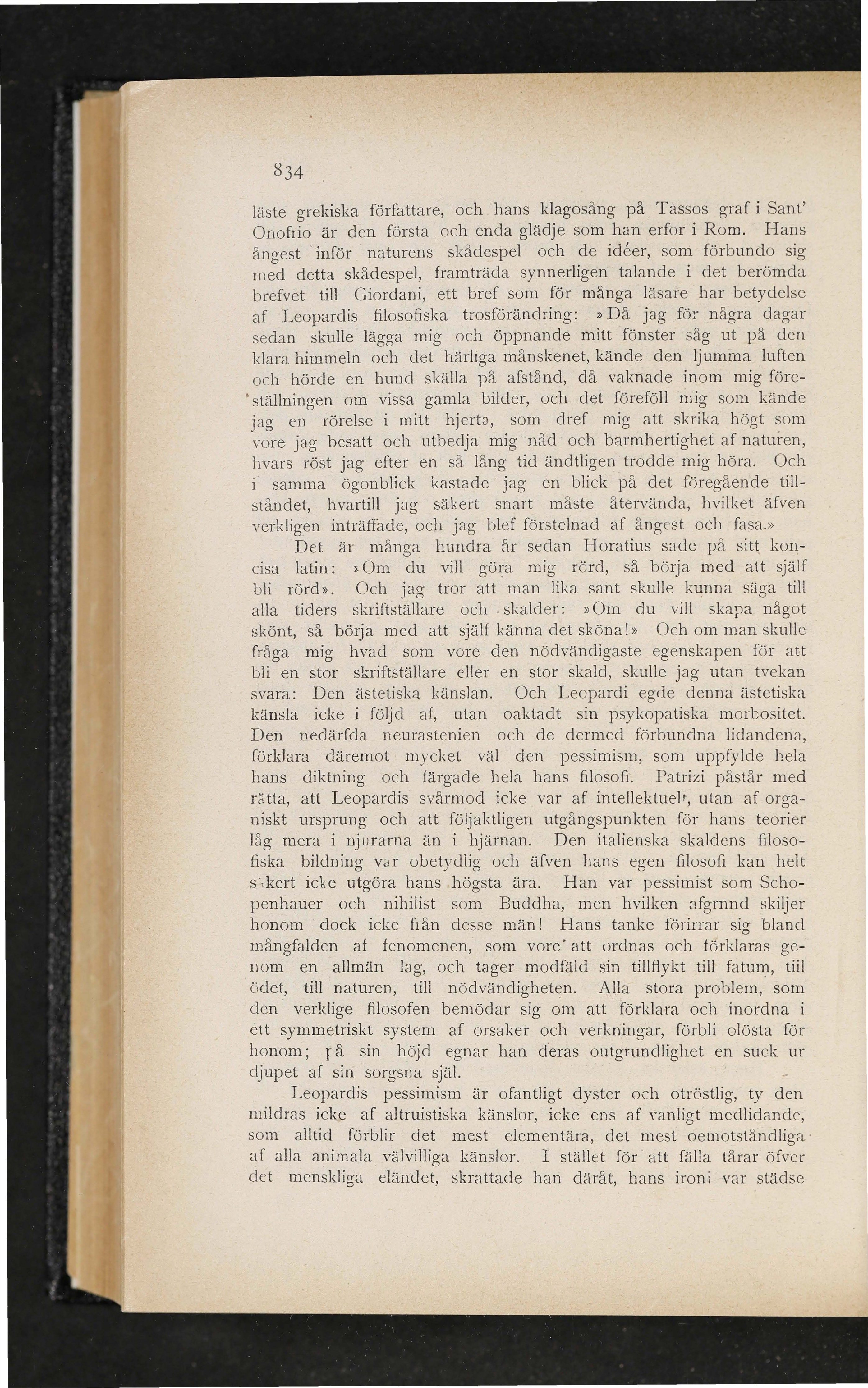 rätta, att Leopardis svårmod icke var af intellektuelt, utan af