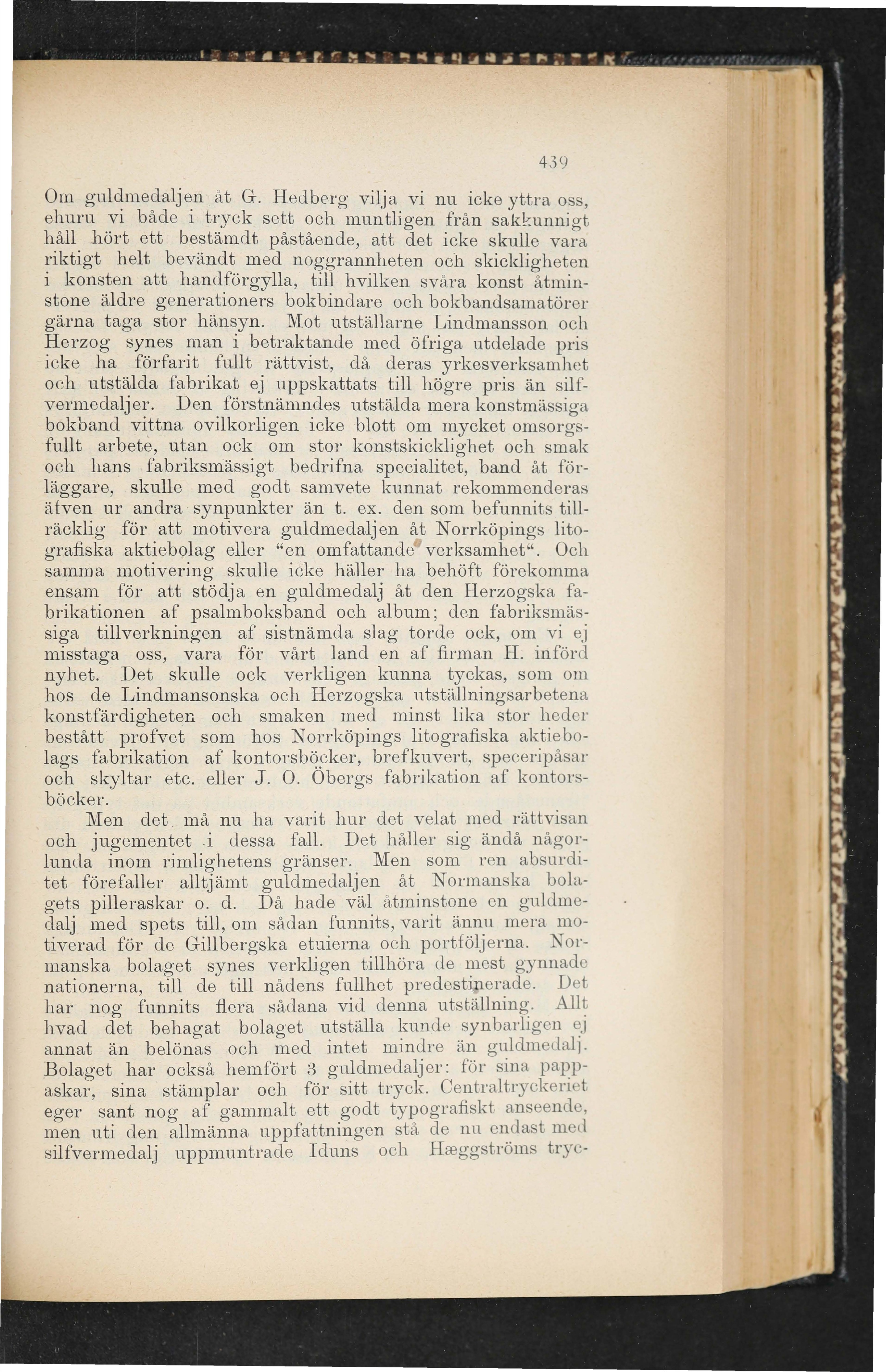 Om guldmedaljen åt G. Hedberg vilja vi nu icke yttra oss,