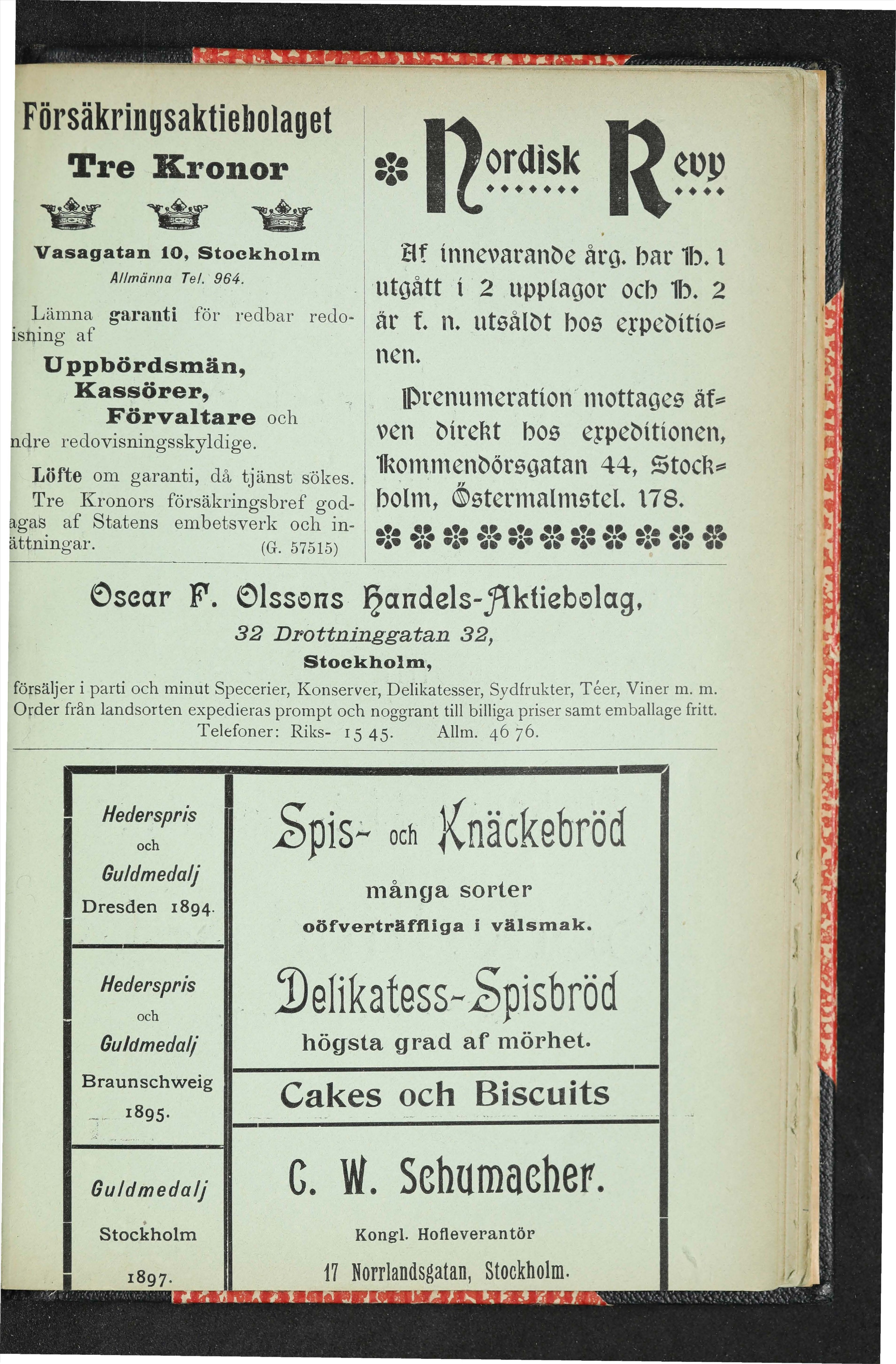 G. W. SchatnacheF. Kongl. Hofleverantör 17 Norrlandsgatan, Stockholm.