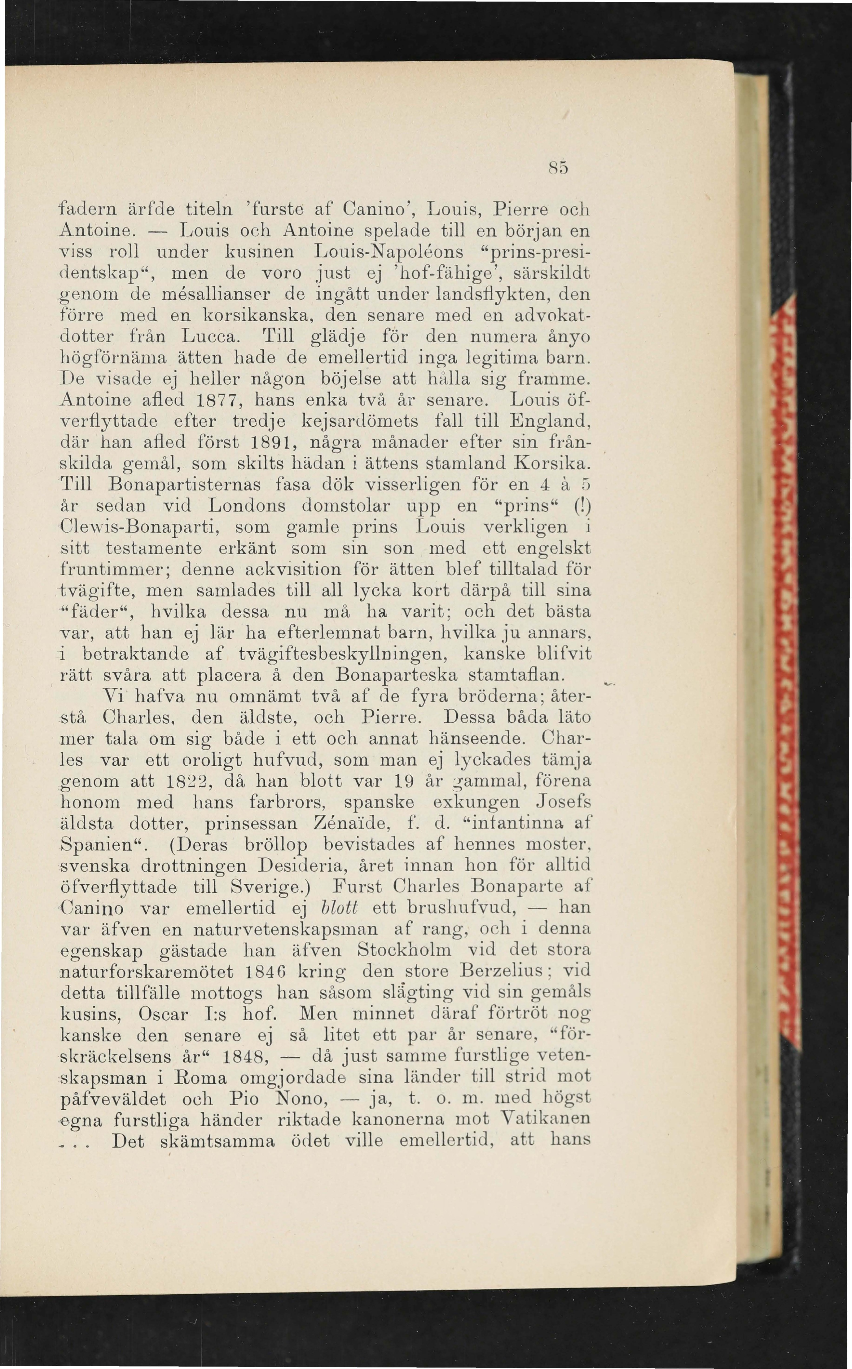 fadern ärfde titeln ’furste af Canino’, Louis, Pierre och