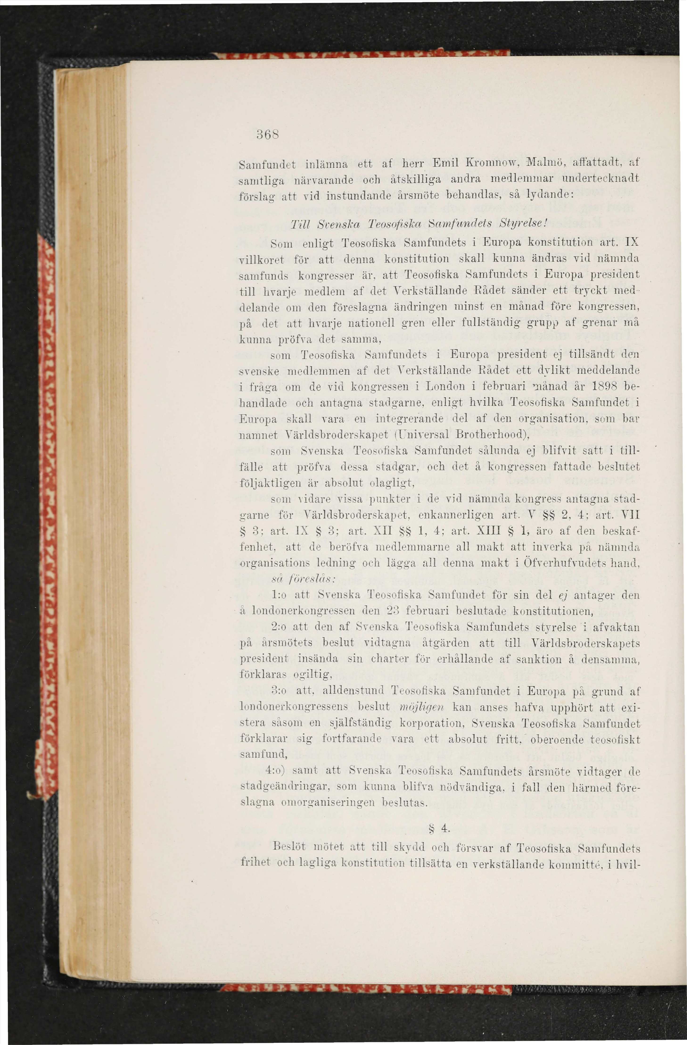 2:o att den af Svenska Teosofiska Samfundets styrelse i afvaktan