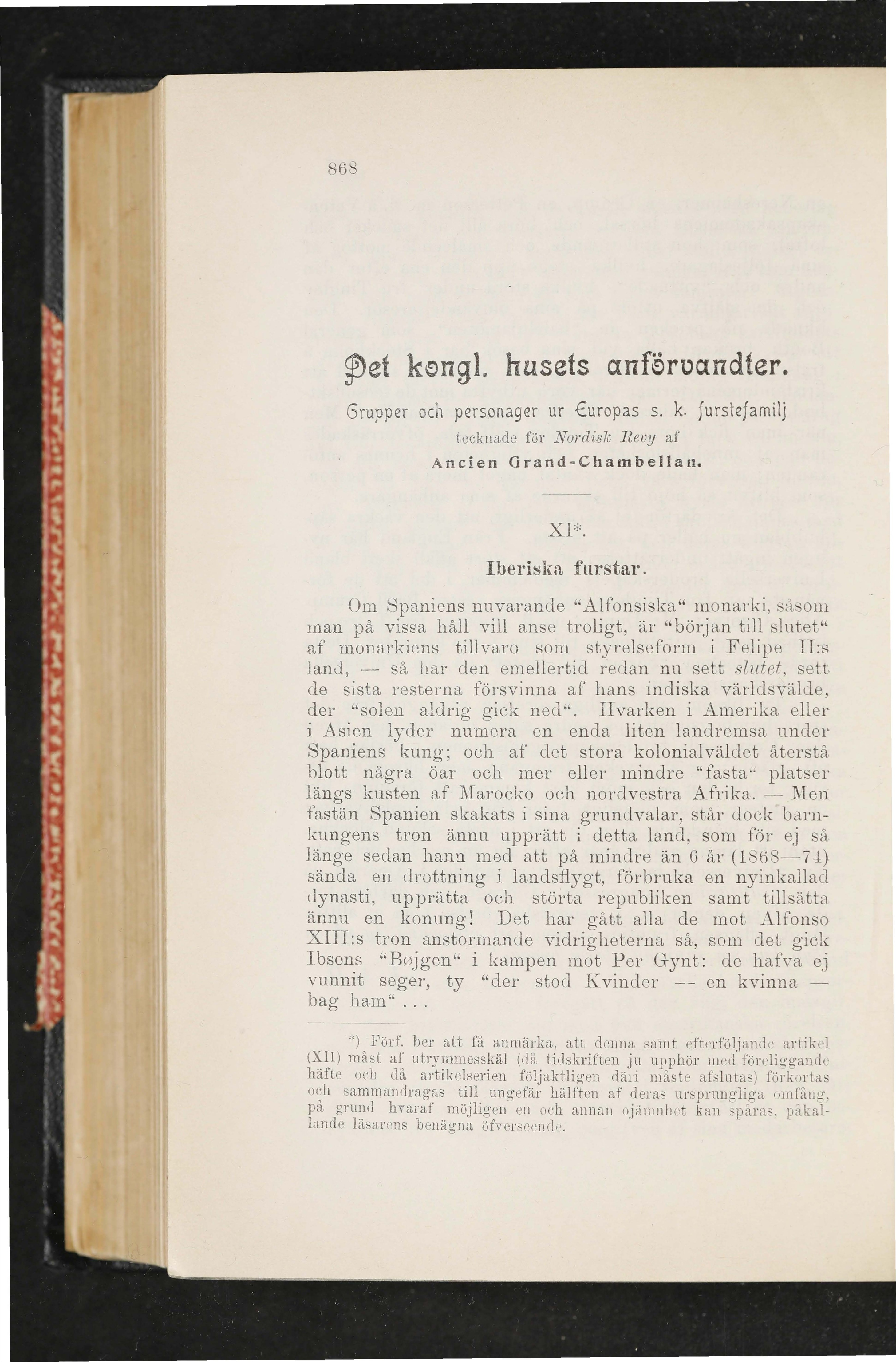 Full resolution (JPEG) - On this page / på denna sida - Häfte 11—12 - Det kongl. husets anförvandter, grupper och personager af Europas k. furstefamilj, af Ancien Grand-Chambellan. XI—XII - XI. Iberiska furstar