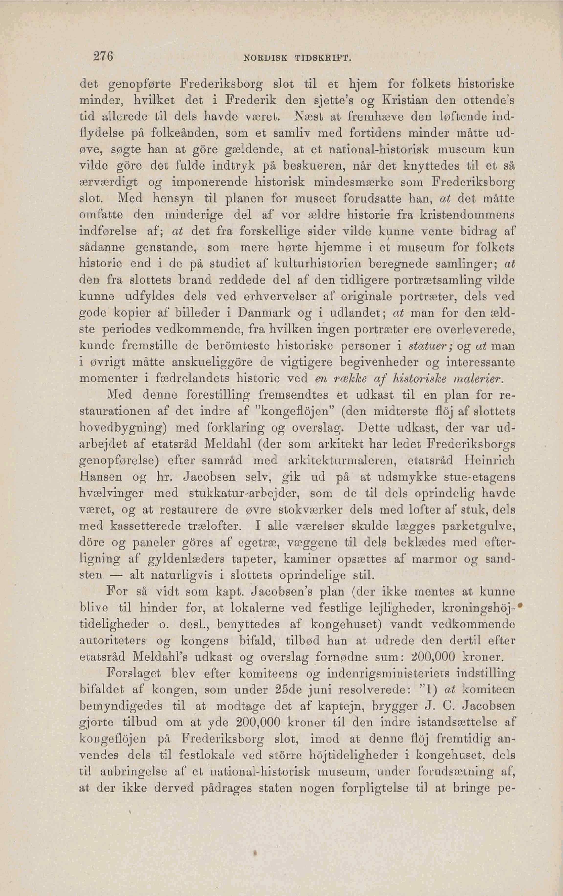 slot. Med hensyn til planen for museet forudsatte han, at det måtte