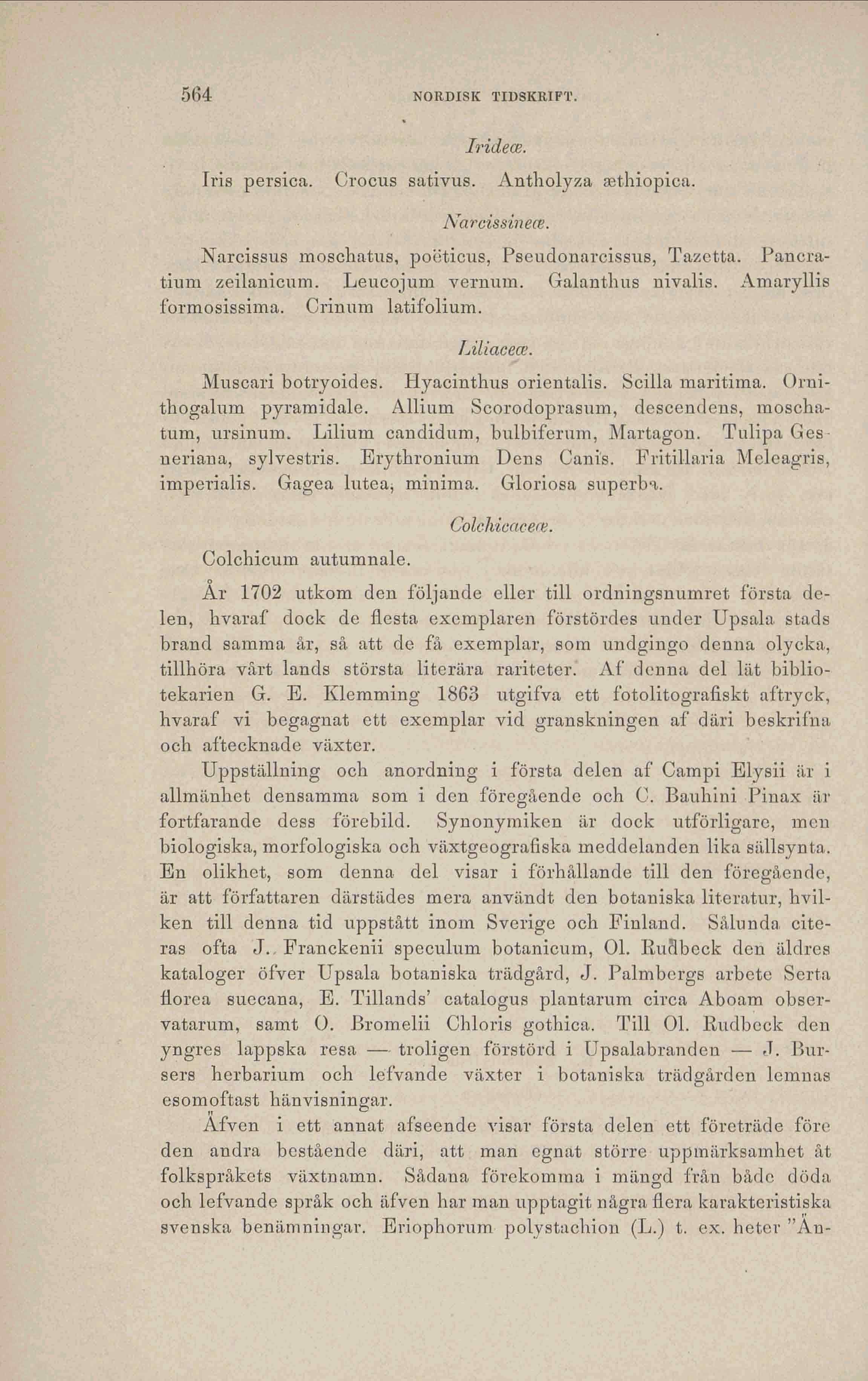 kataloger öfver Upsala botaniska trädgård, J. Palmborgs arbete Serta