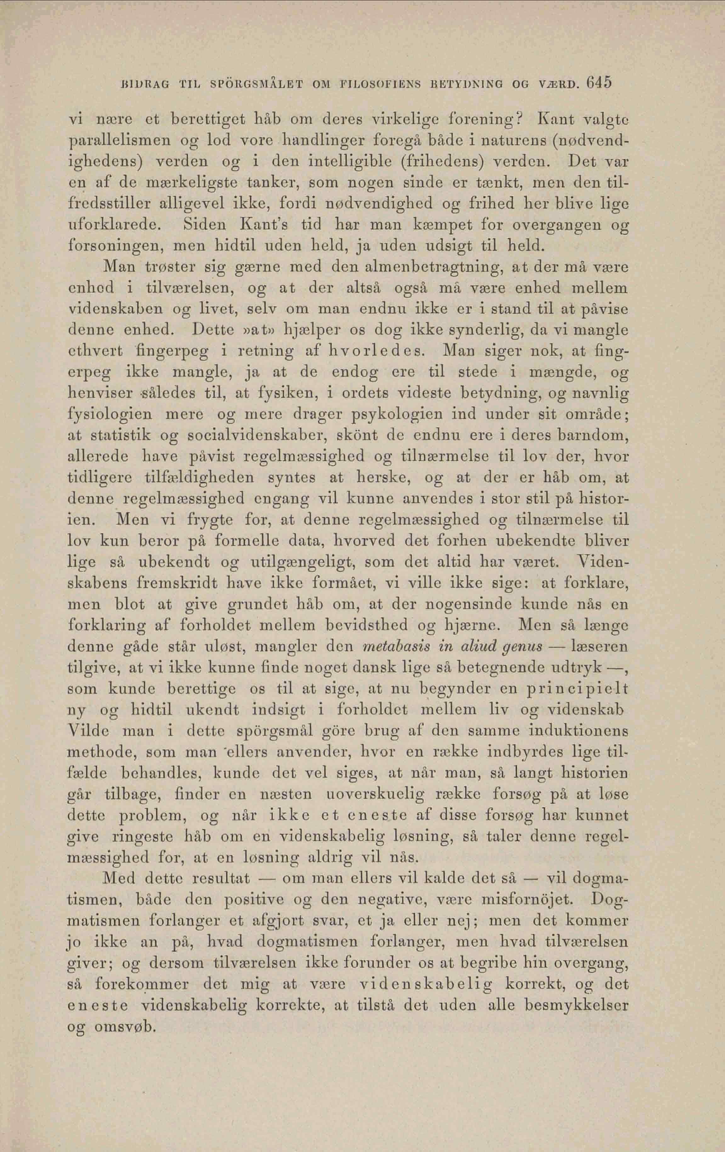 BIDRAG TIL SPØRGSMÅLET OM FILOSOFIENS BETYDNING OG VÆRD.