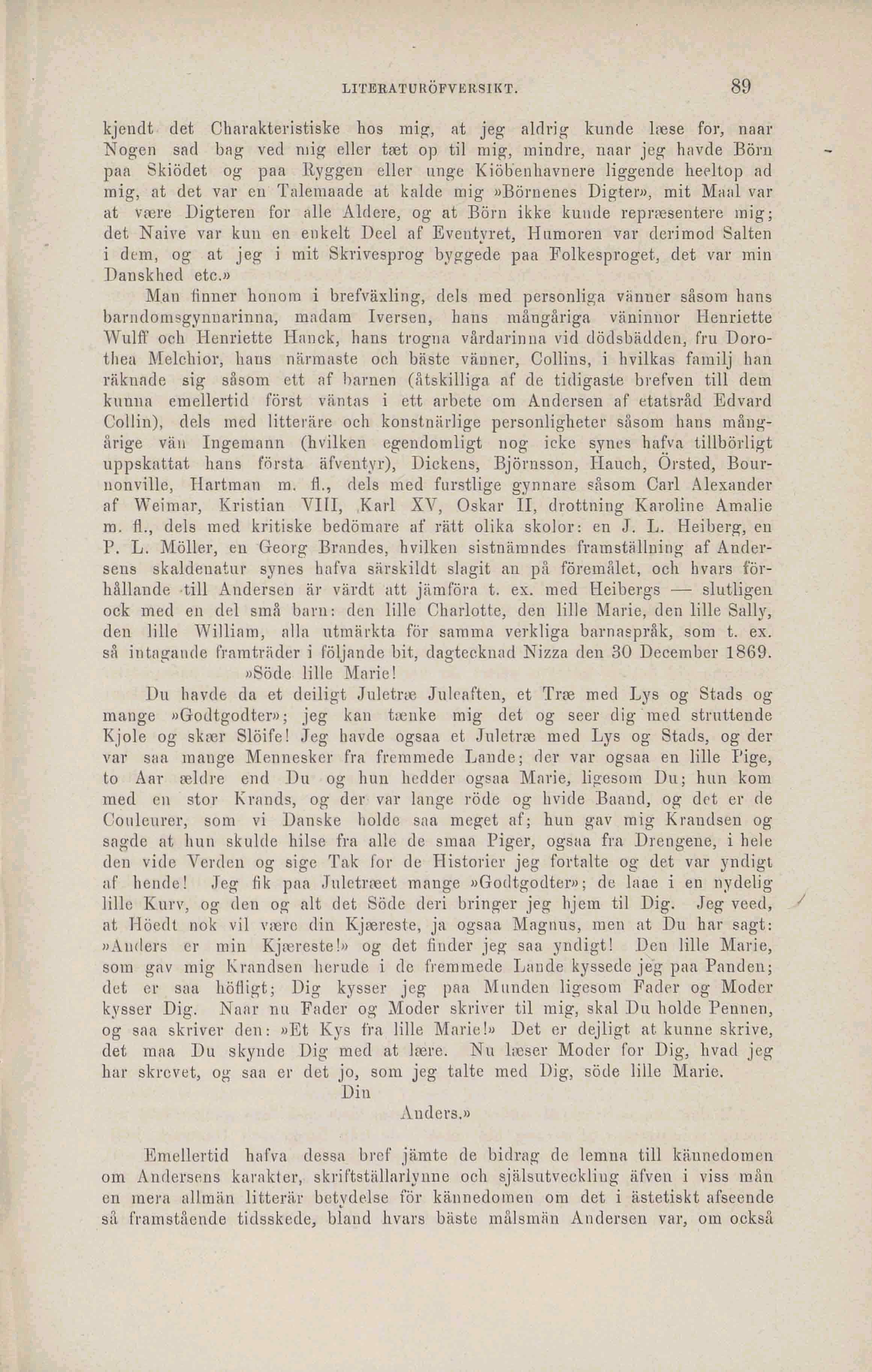 om Andersons karakter, skriftställarlynne och själsutveckling äfven i viss mån