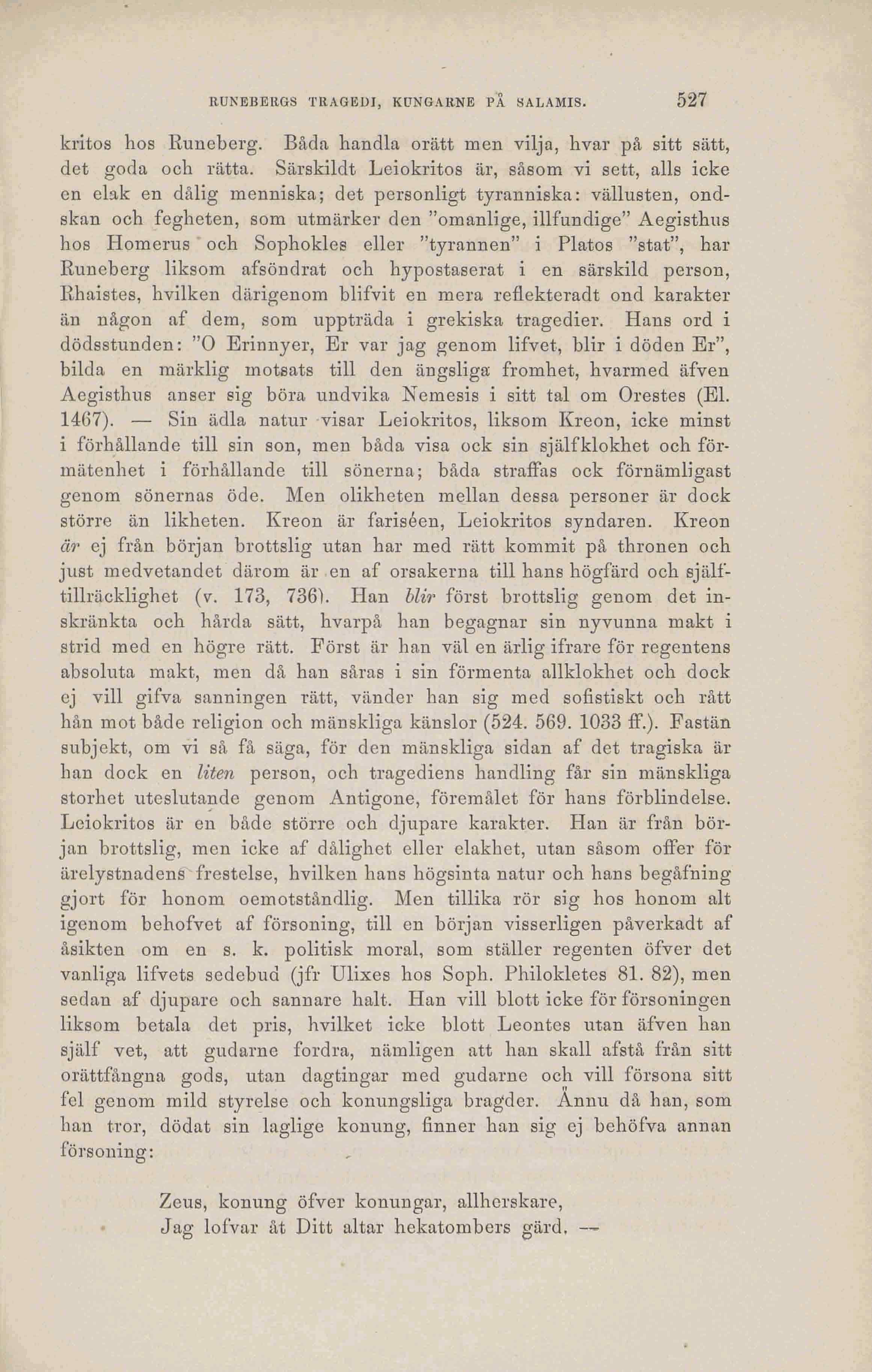 än någon af dera, som uppträda i grekiska tragedier. Hans ord i