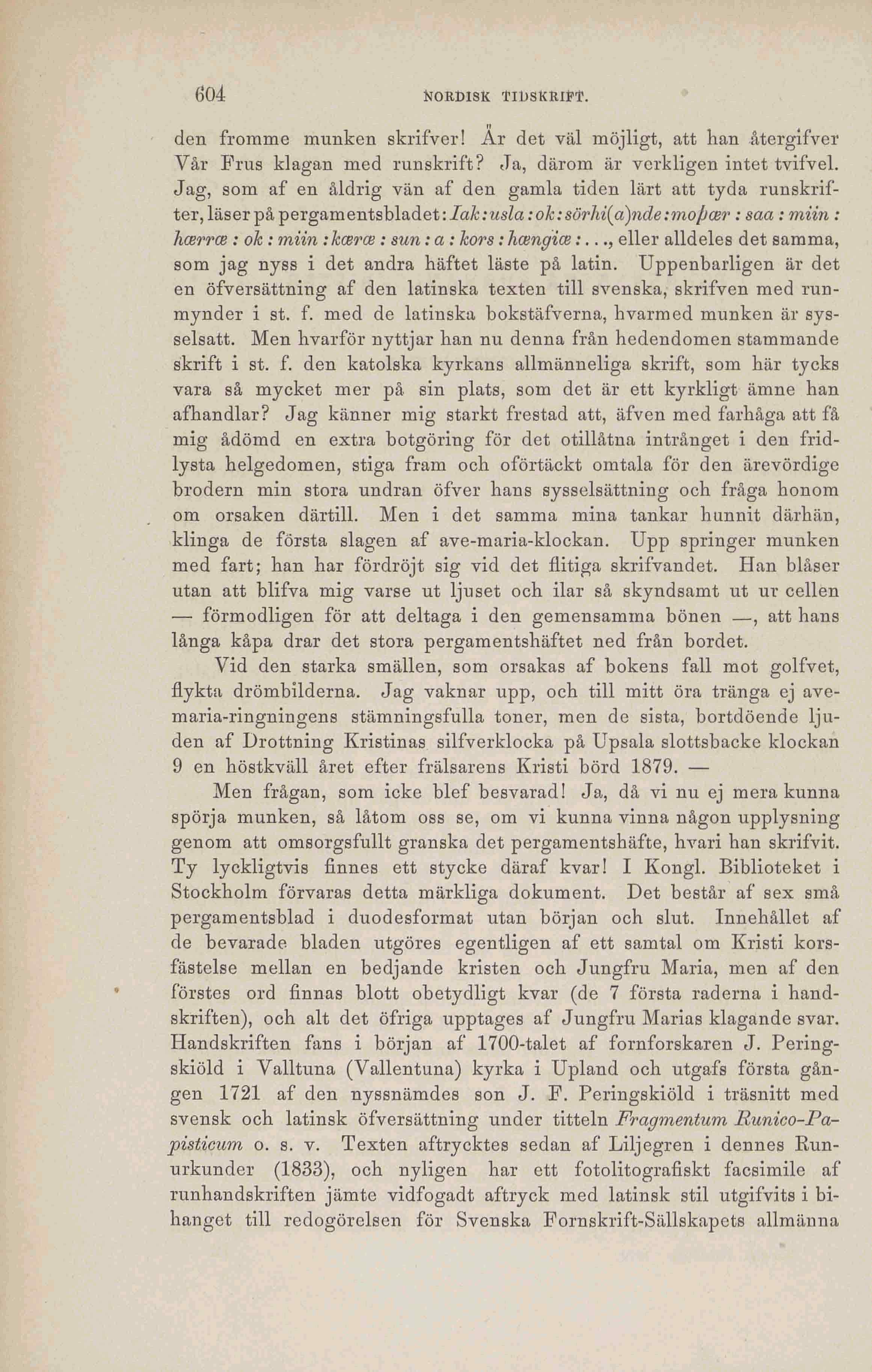 svensk och latinsk öfversättning under titteln Fragmentum Runico-Pa