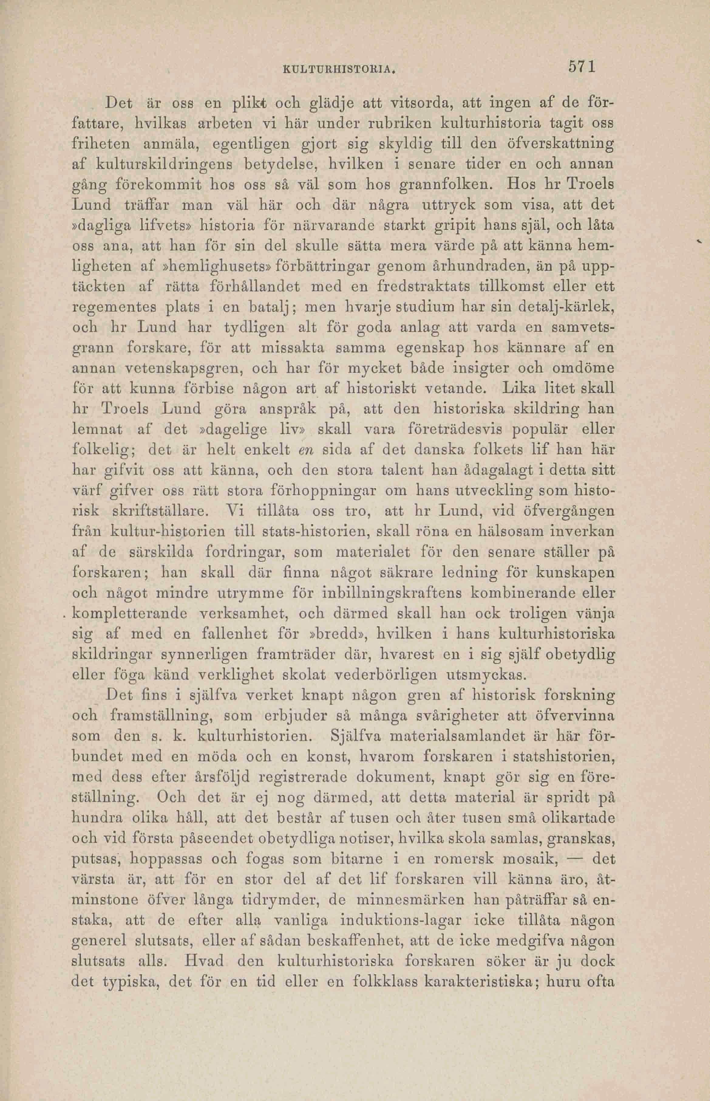 hr Troels Lund göra anspråk på, att den historiska skildring han