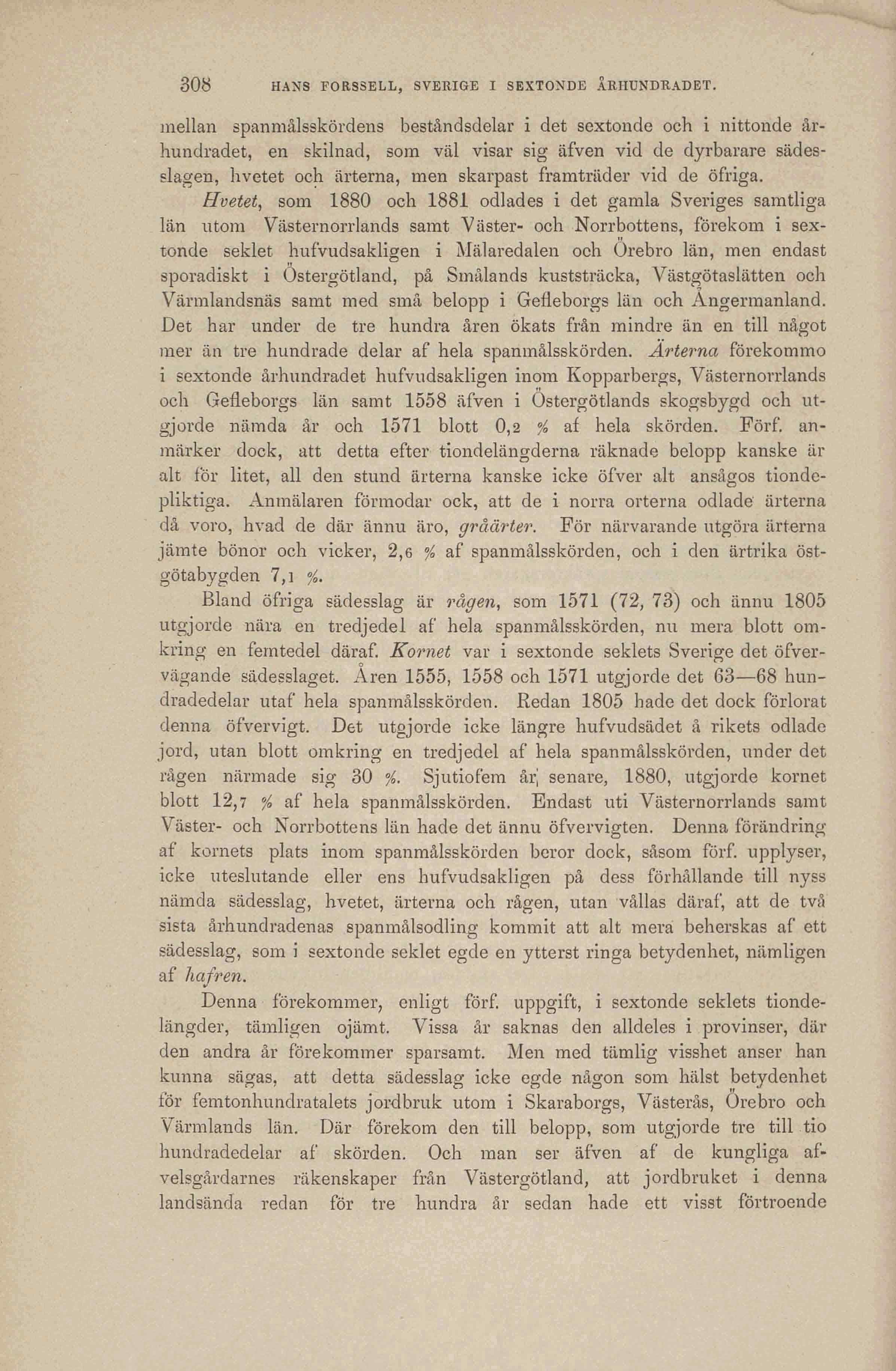 HANS FORSSELL, SVERIGE I SEXTONDE ÅRHUNDRADET.