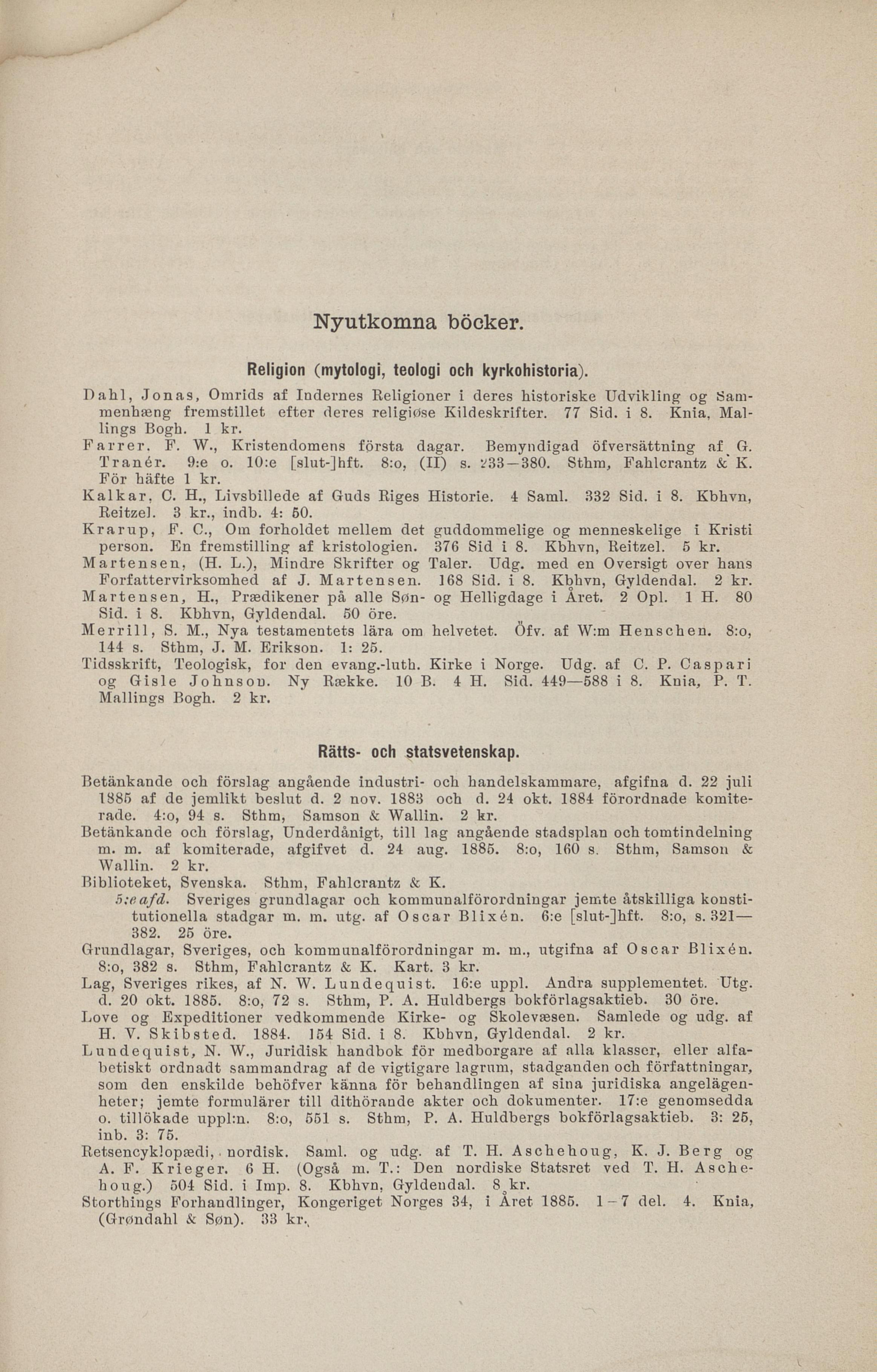 d. 20 okt. 1885. 8:o, 72 s. Sthm, P. A. Huldbergs bokforlagsaktieb. 30 öre.