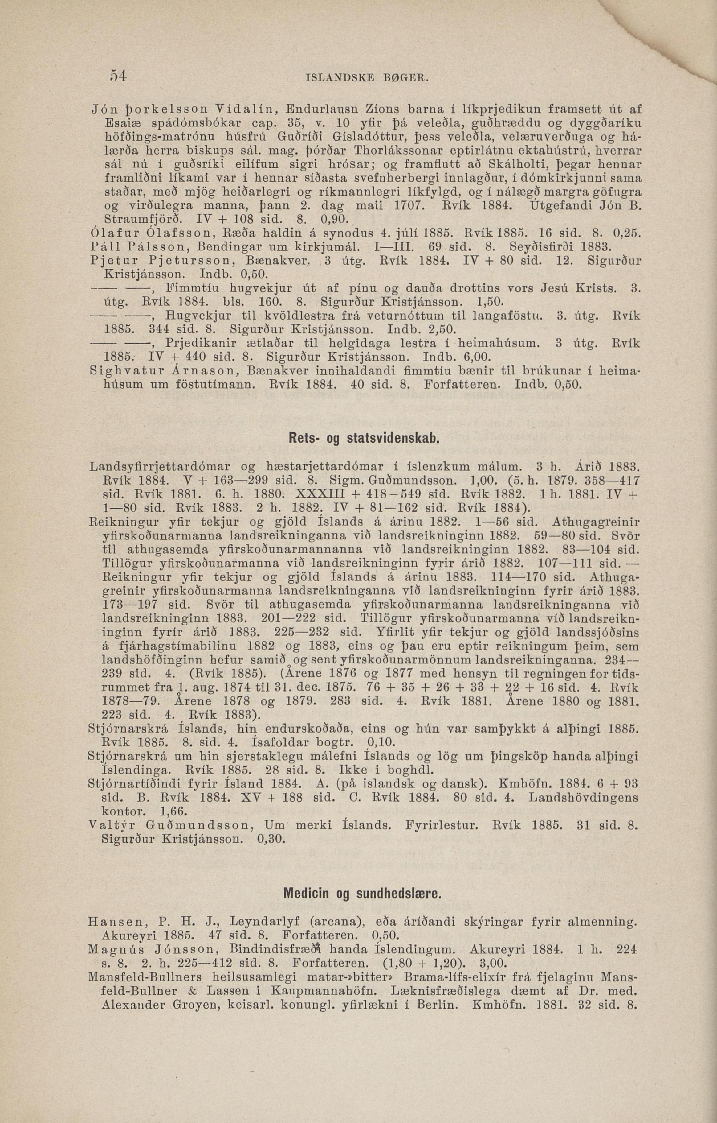 I—Bo sid. Rvik 1883. 2 h. 1882. IV +Bl 162 sid. Rvik 1884).