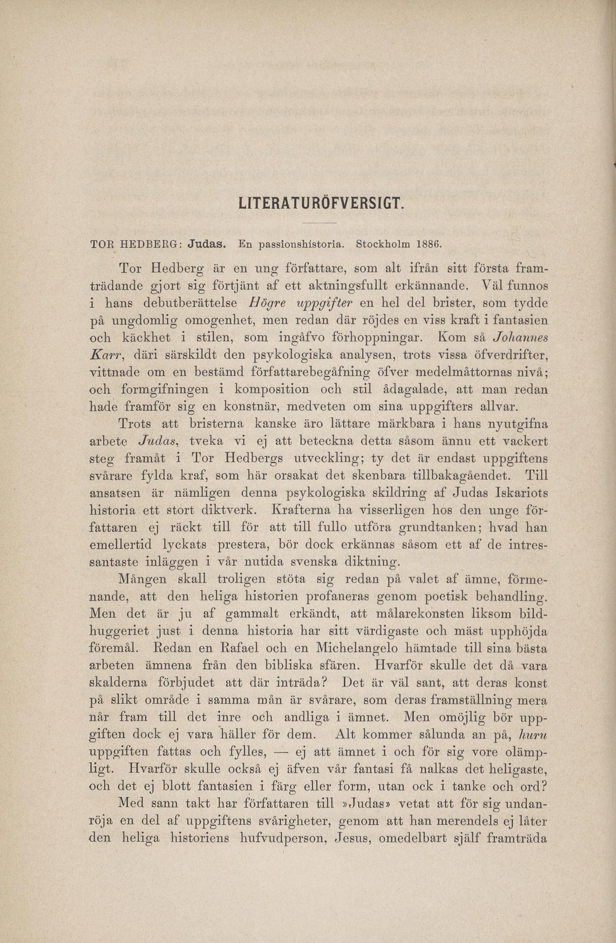 TOR HEDBERG: Judas. En passionshistoria. Stockholm 1886.