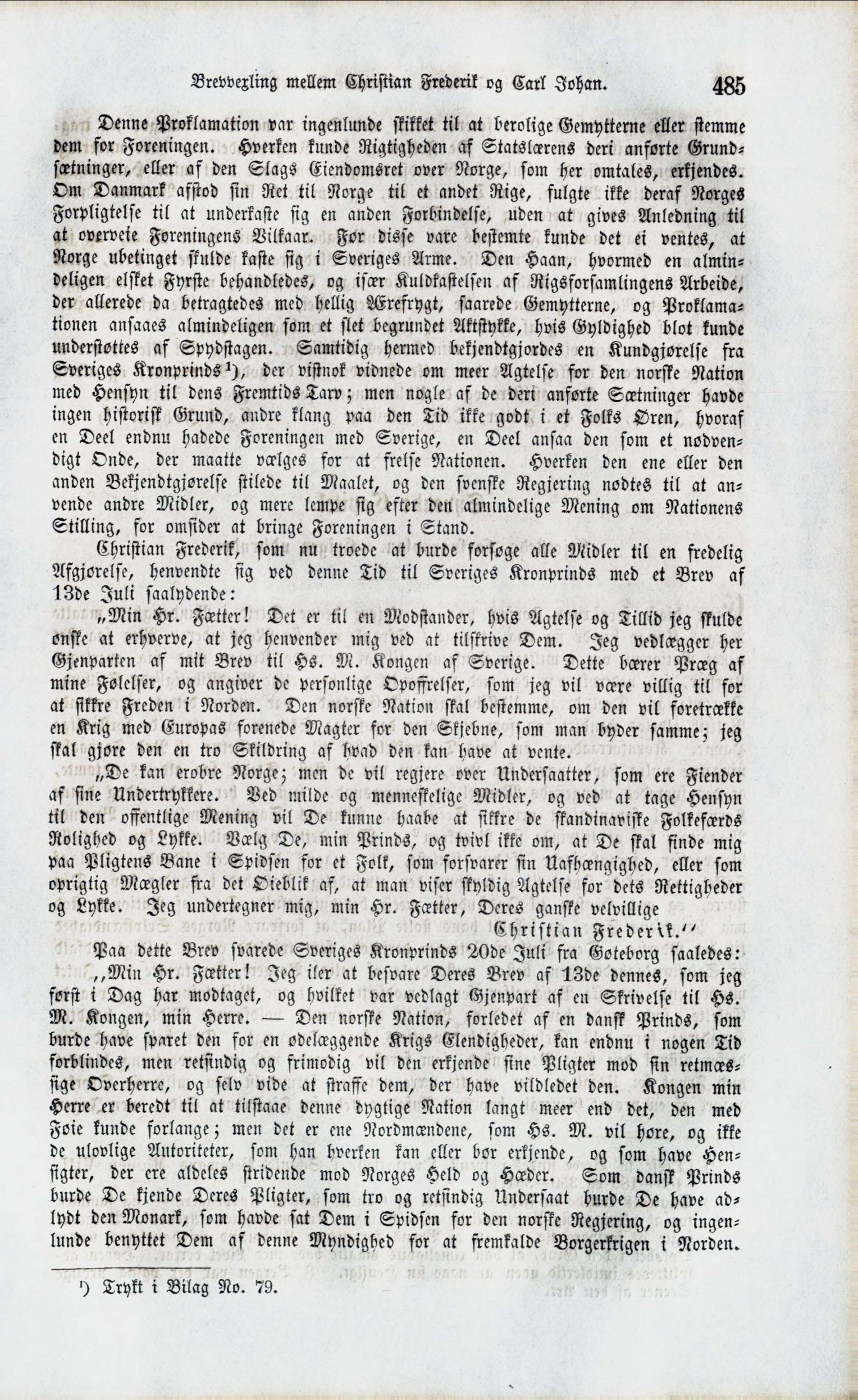 Brevvexling mellem Christian Fredenk og Carl Johan. 485