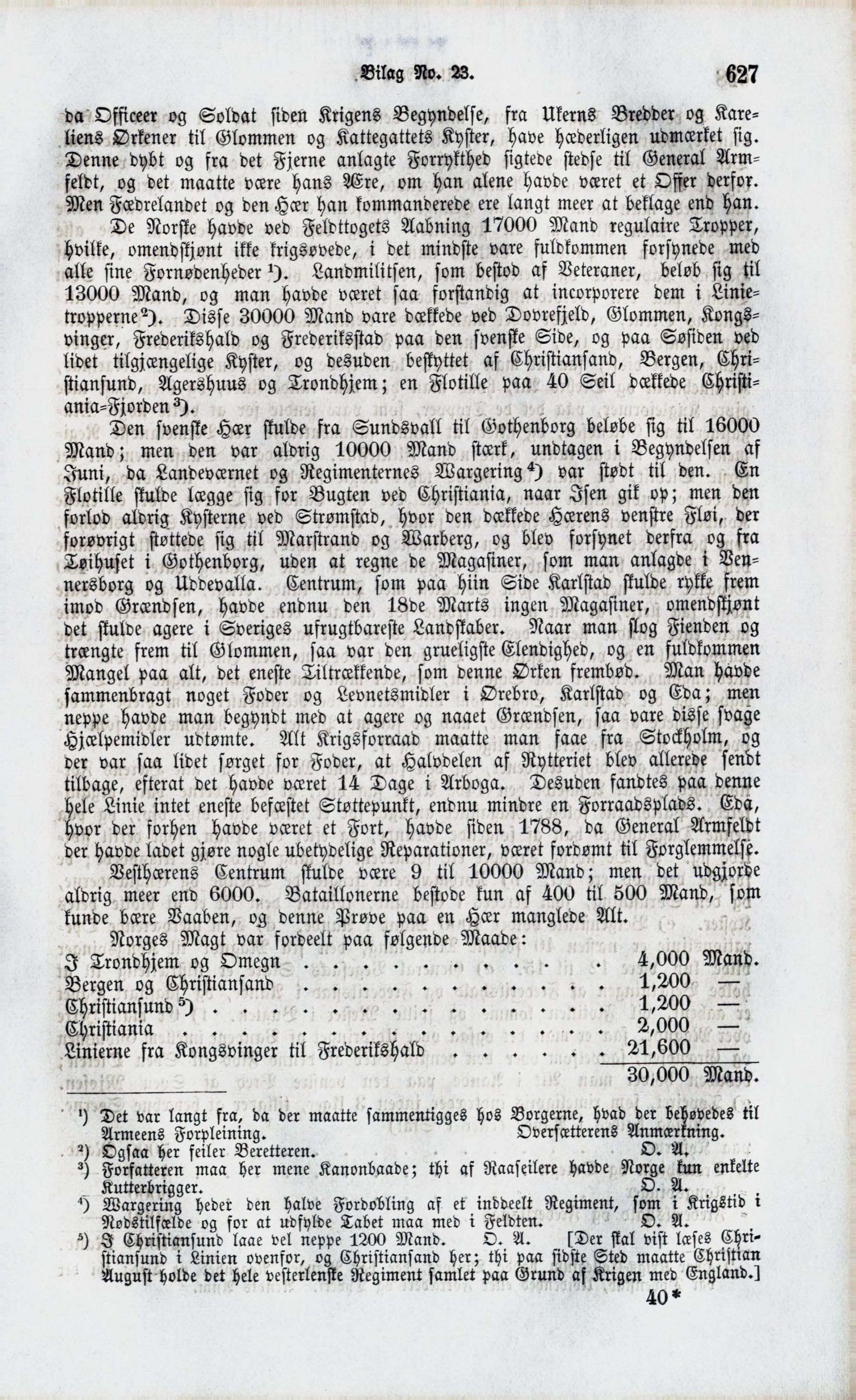 De Norske havde ved Feldttogets Aabning 17000 Mand regulaire Tropper,