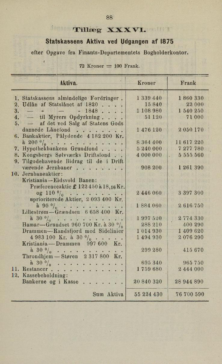 Full resolution (JPEG) - On this page / på denna sida - Tillæg - XXXVI. Statskassens Aktiva ved Udgangen af 1875