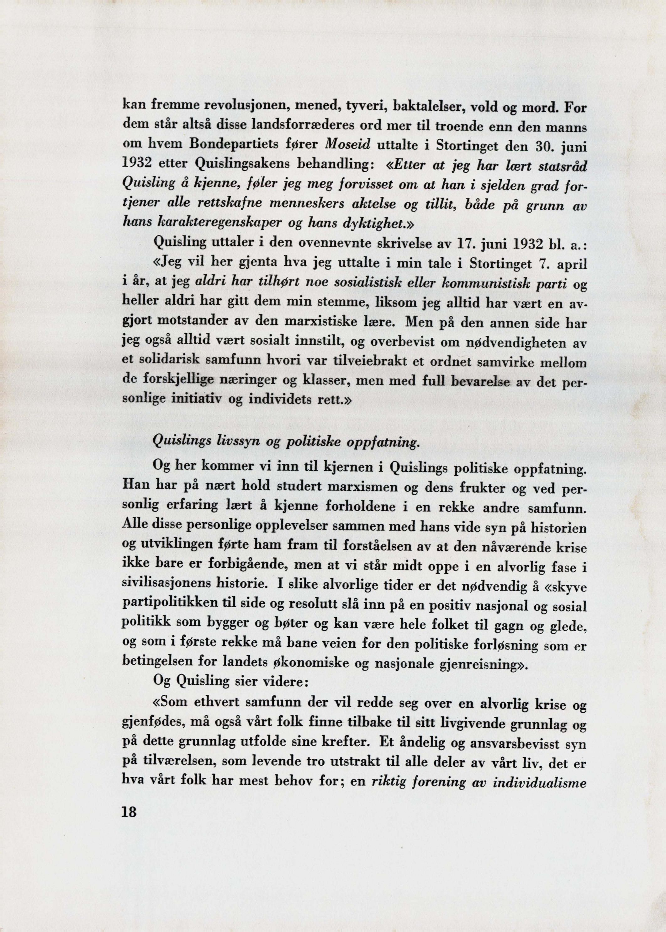 Quisling uttaler i den ovennevnte skrivelse av 17. juni 1932 bl. a.: