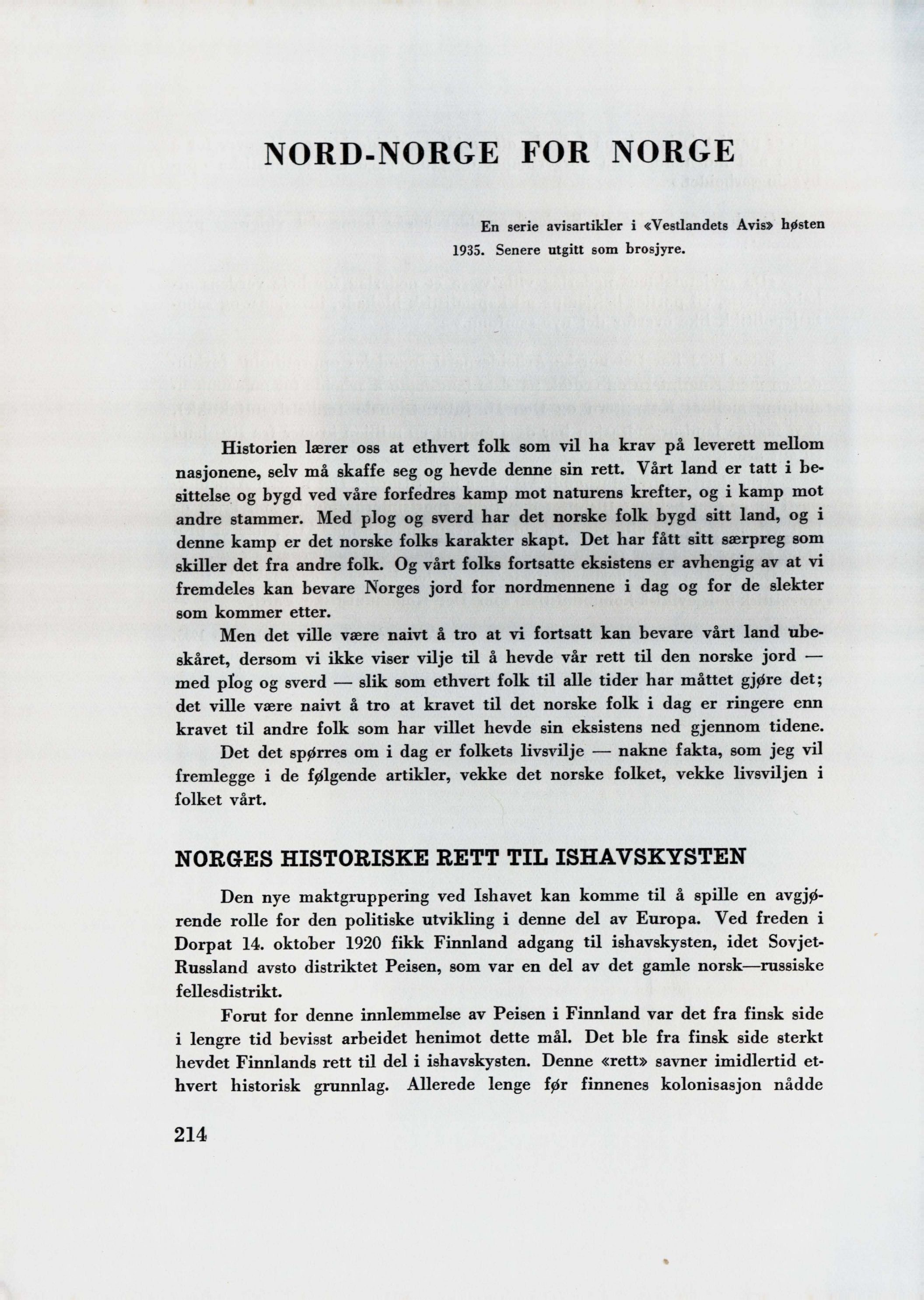 fremlegge i de følgende artikler, vekke det norske folket, vekke livsviljen i
