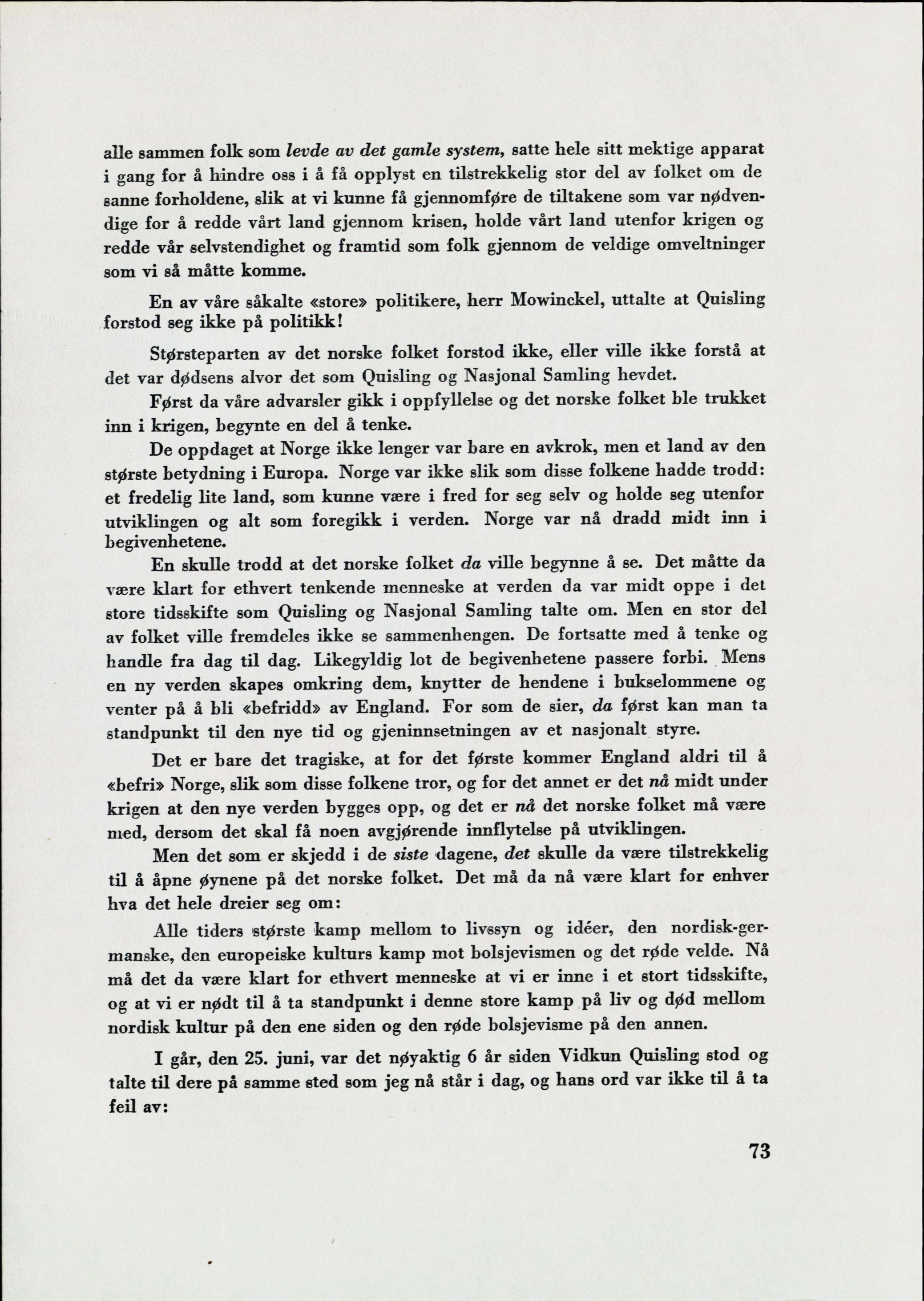 store tidsskifte som Quisling og Nasjonal Samling talte om. Men en stor del