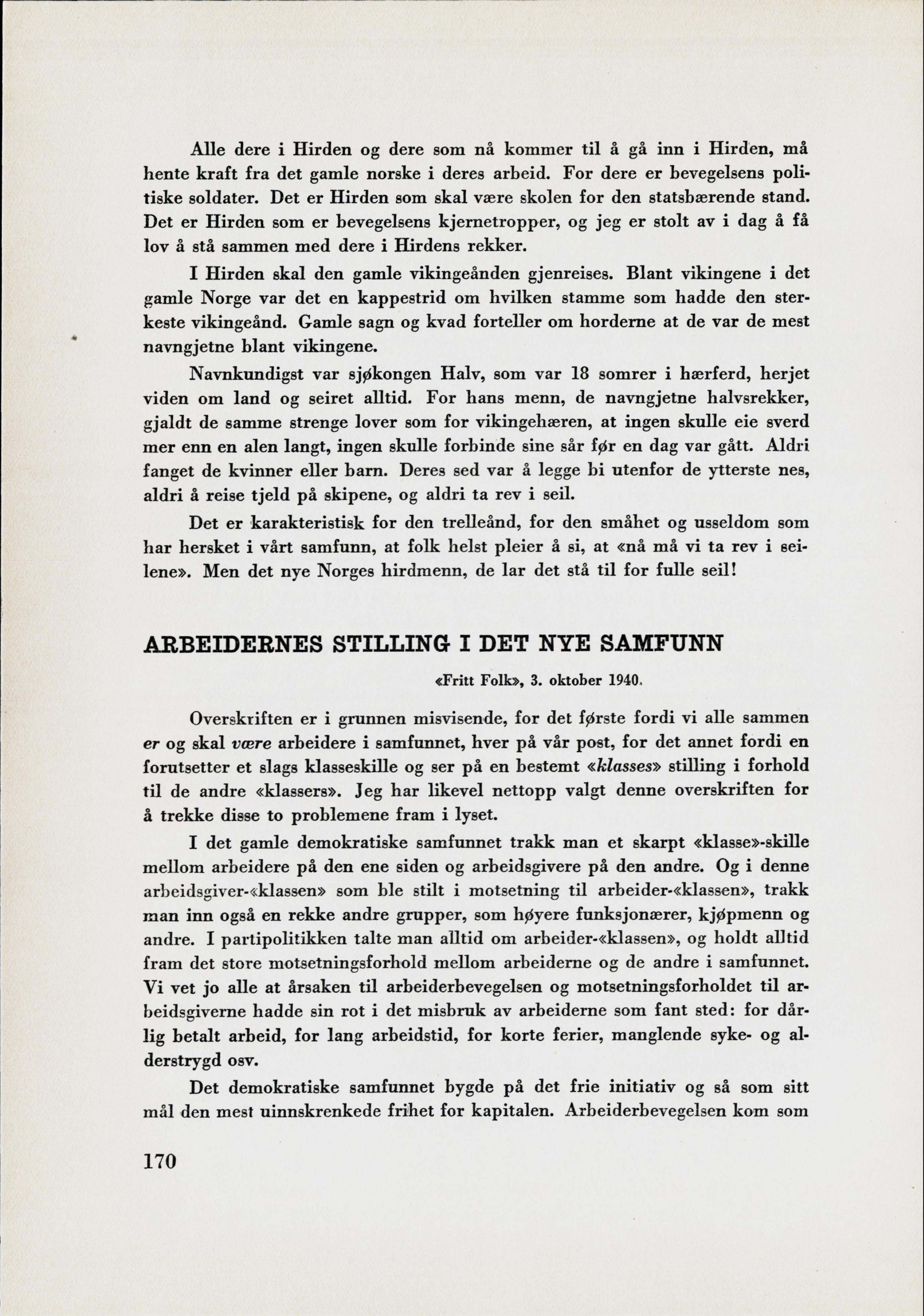 politiske soldater. Det er Hirden som skal være skolen for den statsbærende stand.
