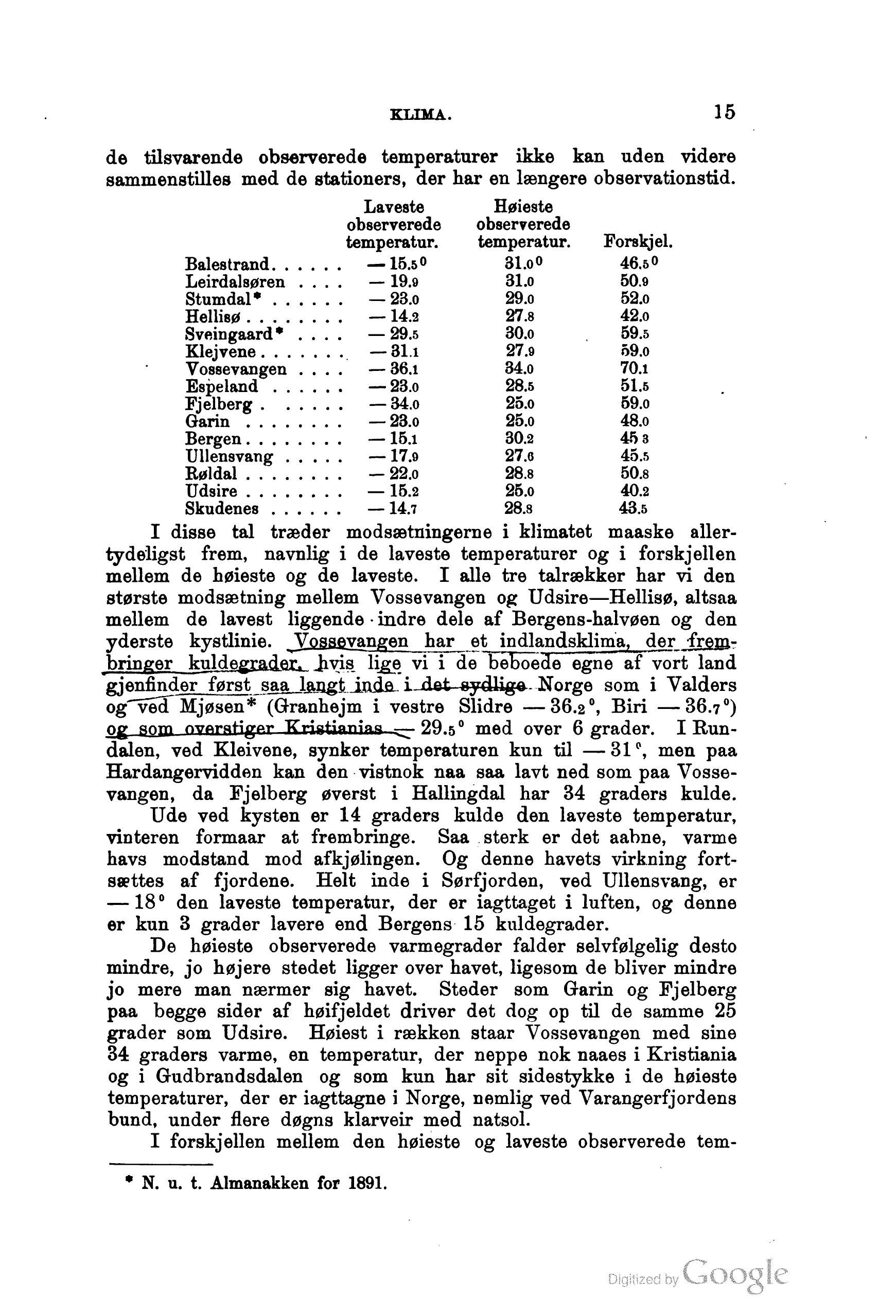 temperaturer, der er iagttagne i Norge, nemlig ved Varangerfjordens