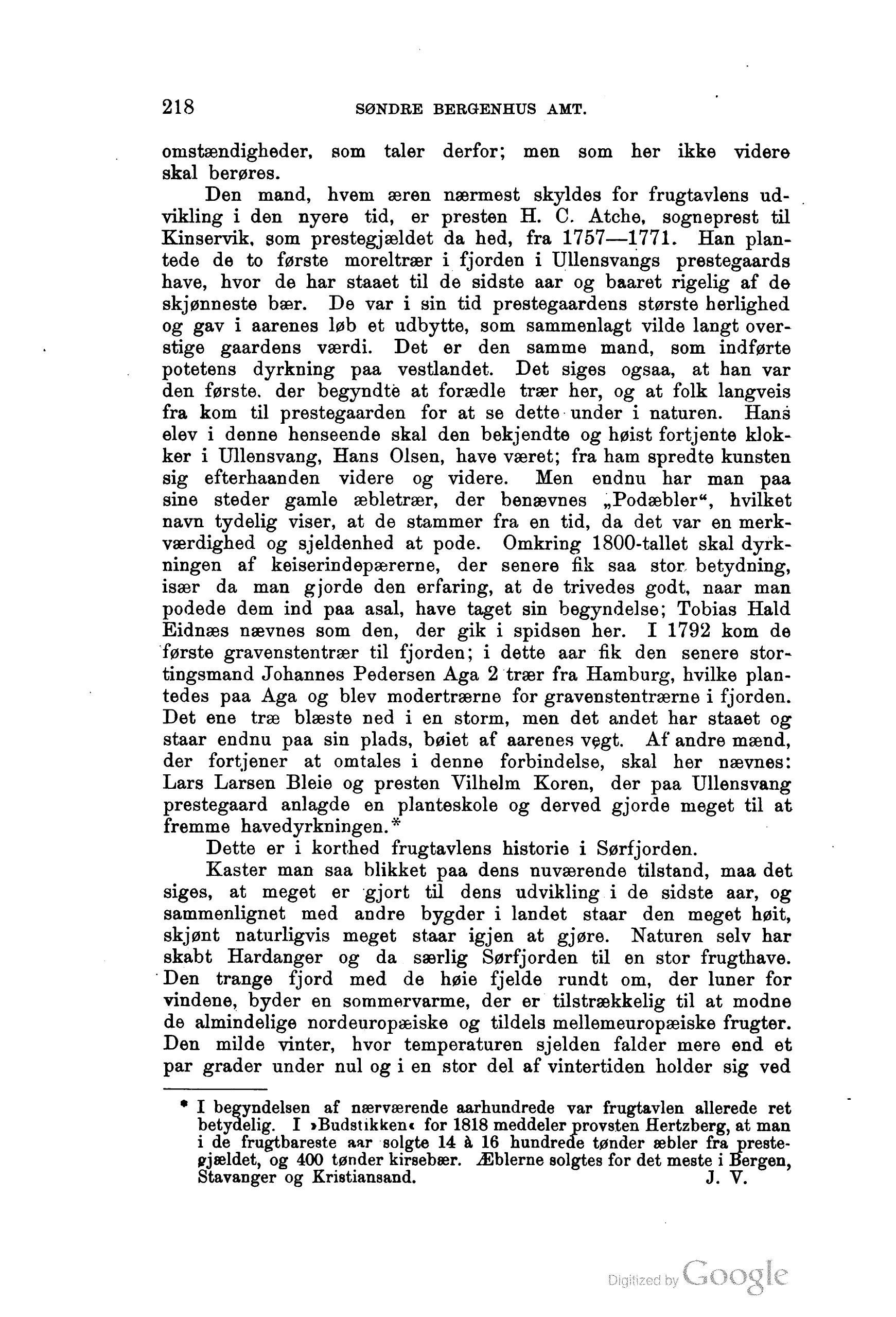 prestegjældet, og 400 tønder kirsebær. Æblerne solgtes for det meste i Bergen,