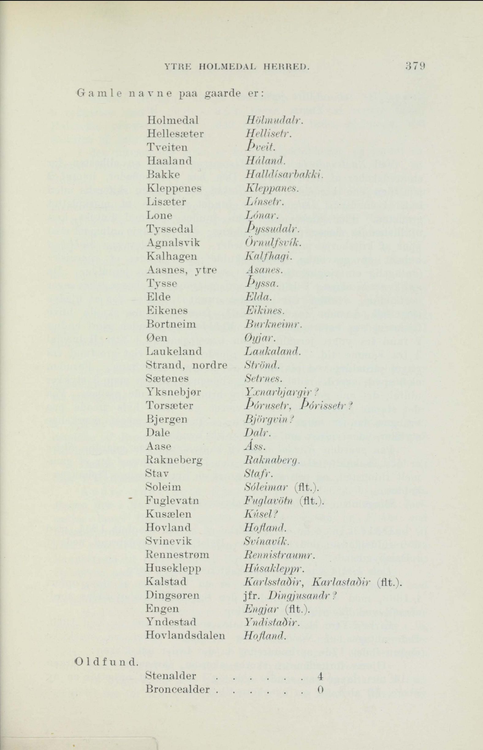 Gamle navne paa gaarde er: