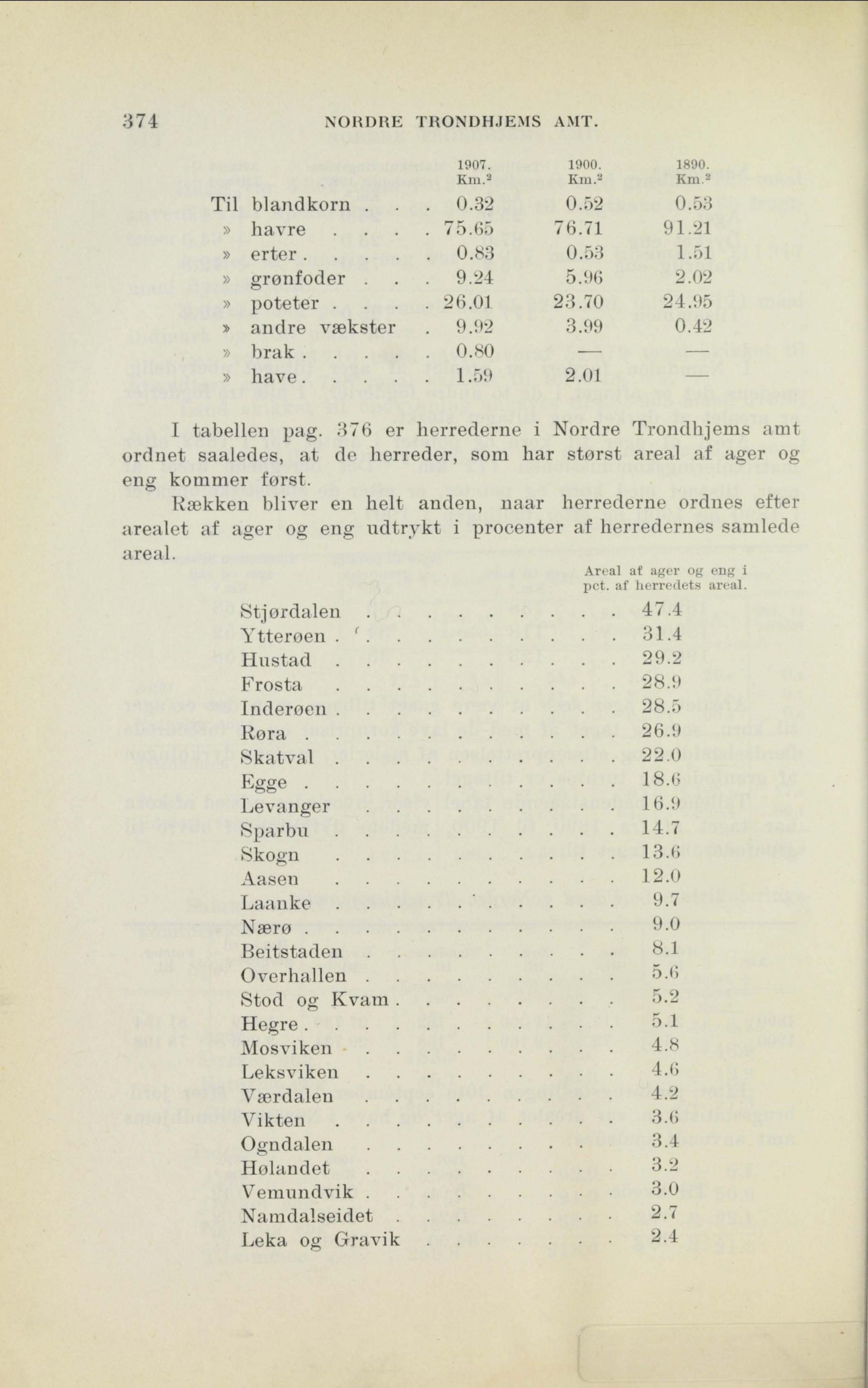 I tabellen pag. 376 er herrederne i Nordre Trondhjems amt