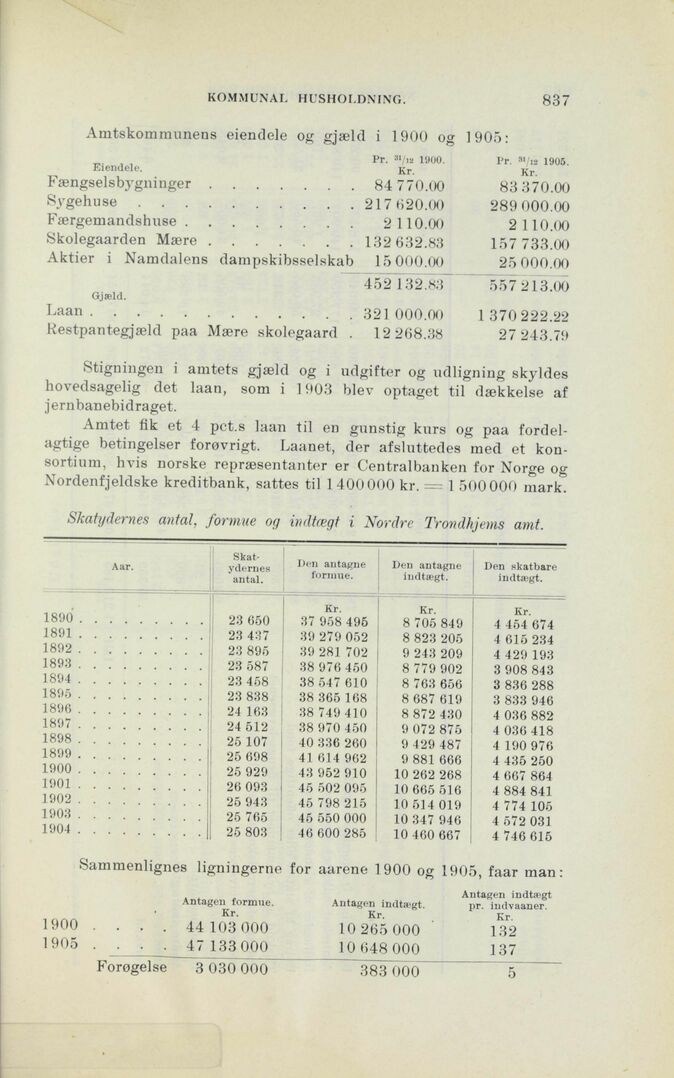 Amtskommunens eiendele og gjæld i 1900 og 1905:
