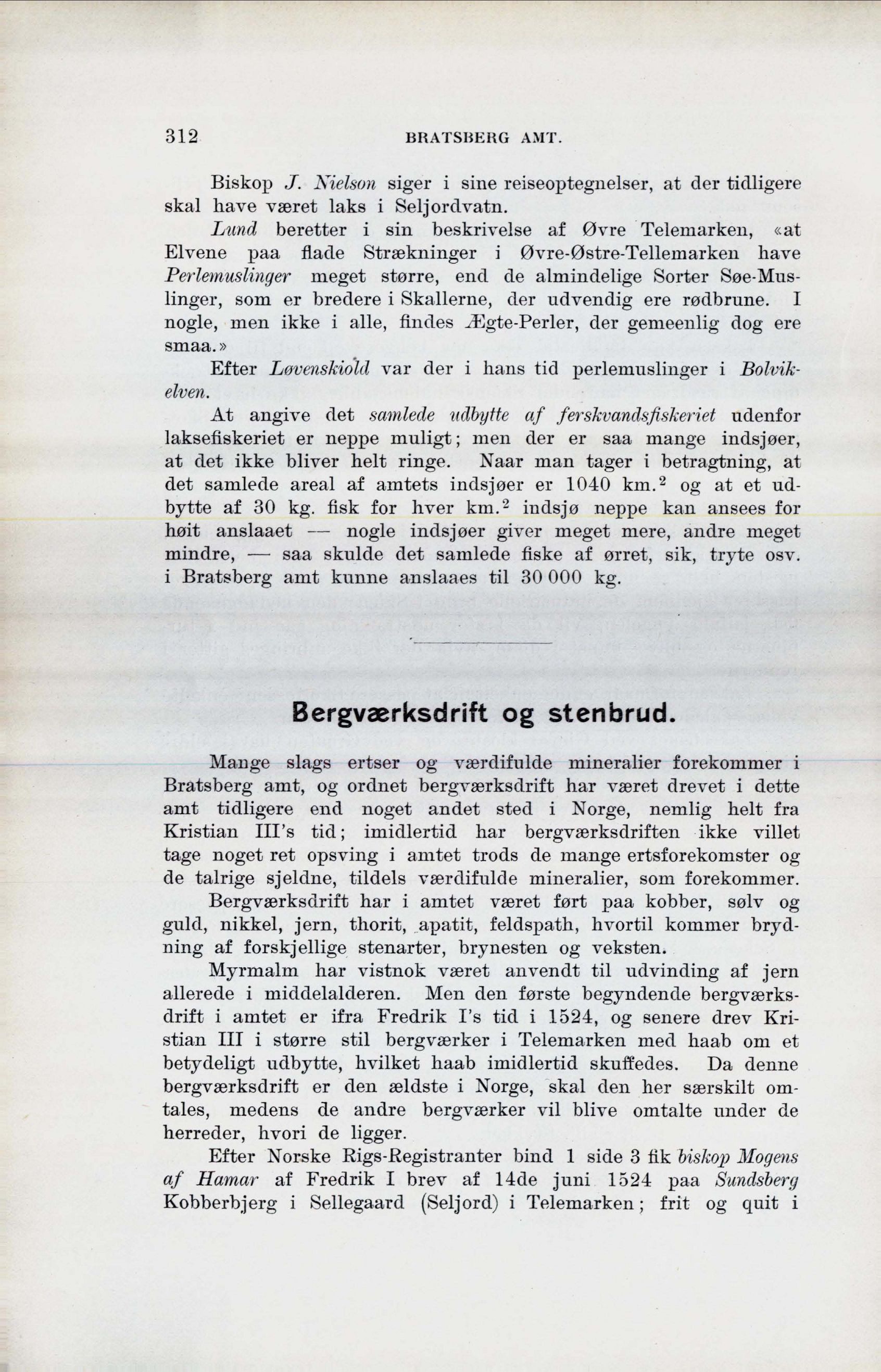 Bratsberg amt, og ordnet bergværksdrift har været drevet i dette
