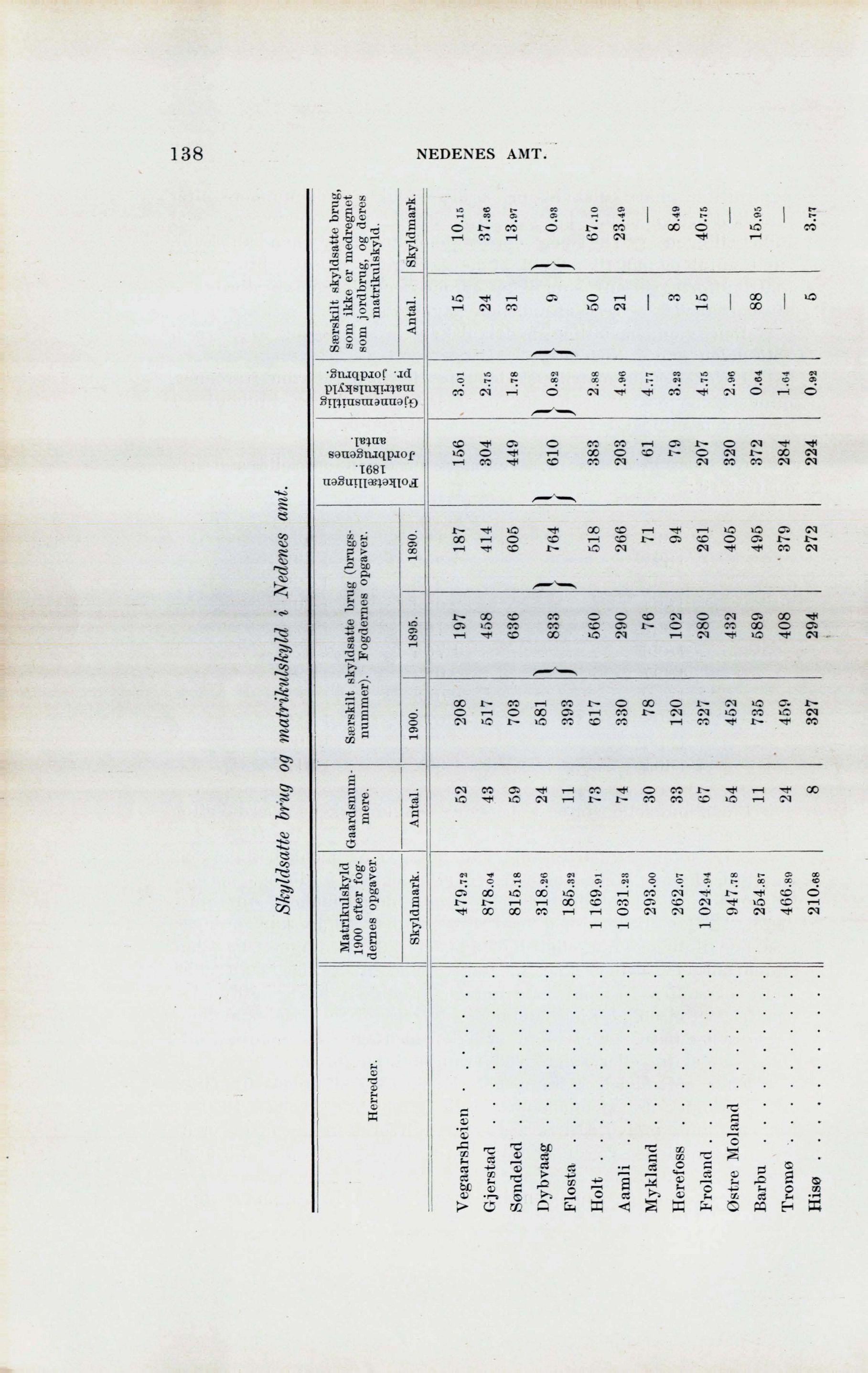 Skyldsatte brug og matrikulskyld i Nedenes amt.