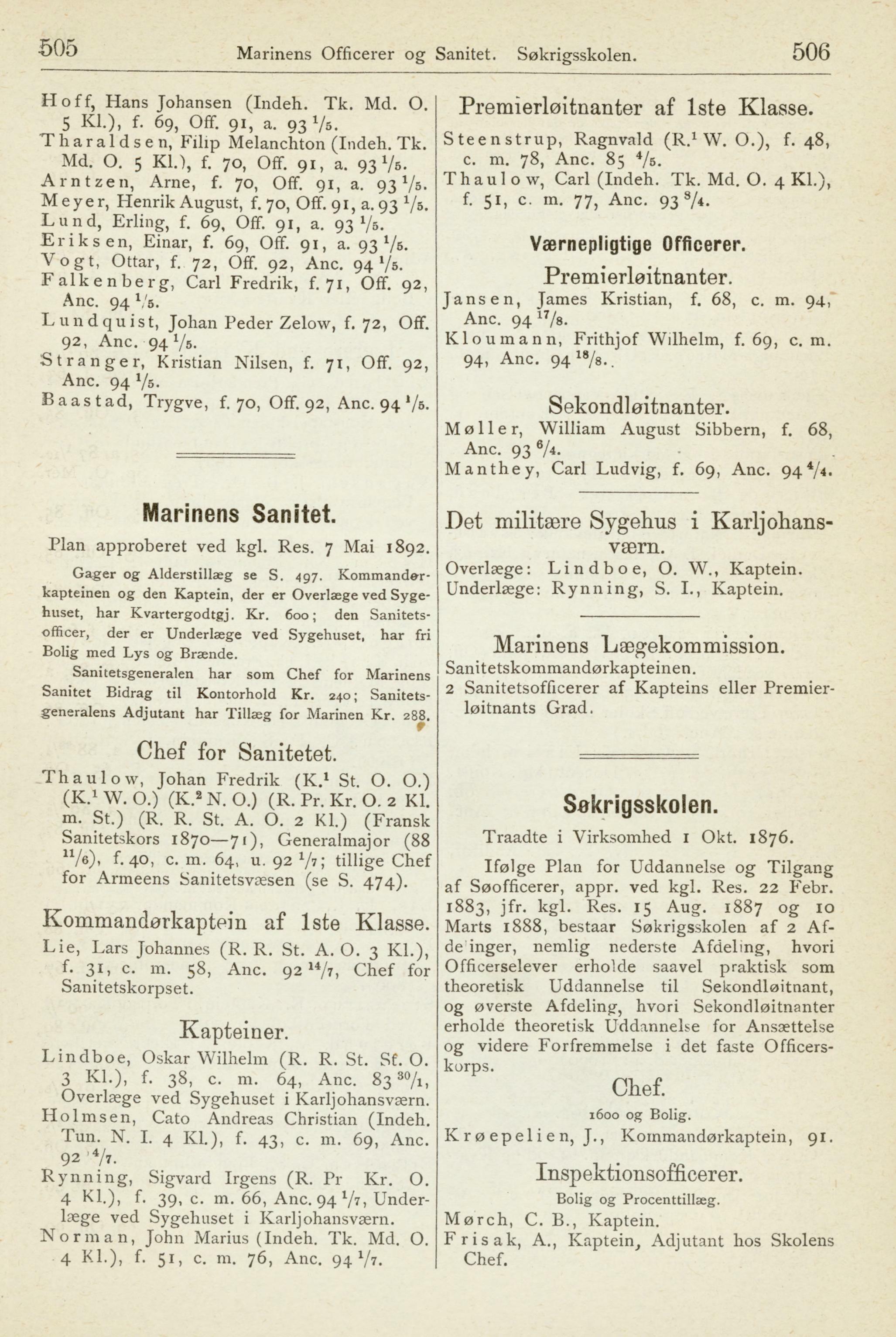 505 Marinens Officerer og Sanitet. Søkrigsskolen. 506